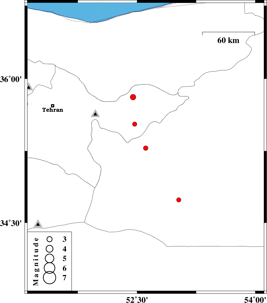| 2007/10/19 | 16:43:35.9 | 20:13:35.9 | 35.28 | 52.61 | 6 | ML:2.7 | 25 km East of Garmsar, Semnan Province | ||