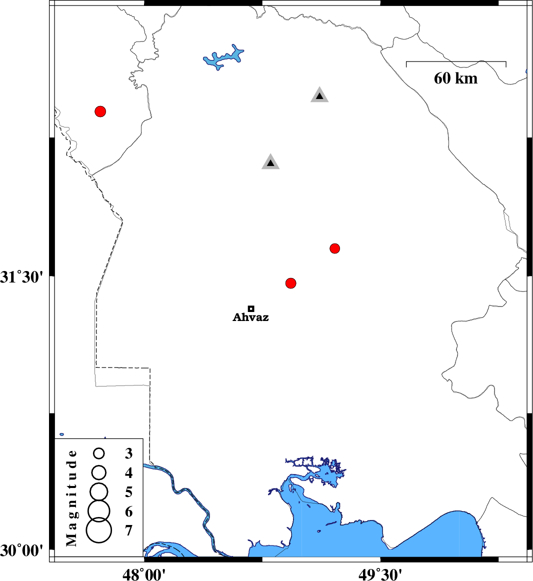 | 2007/10/20 | 03:11:23.0 | 06:41:23.0 | 31.46 | 48.93 | 10 | ML:3 | 28 km North-East of Ahvaz, Khoozestan Province | ||