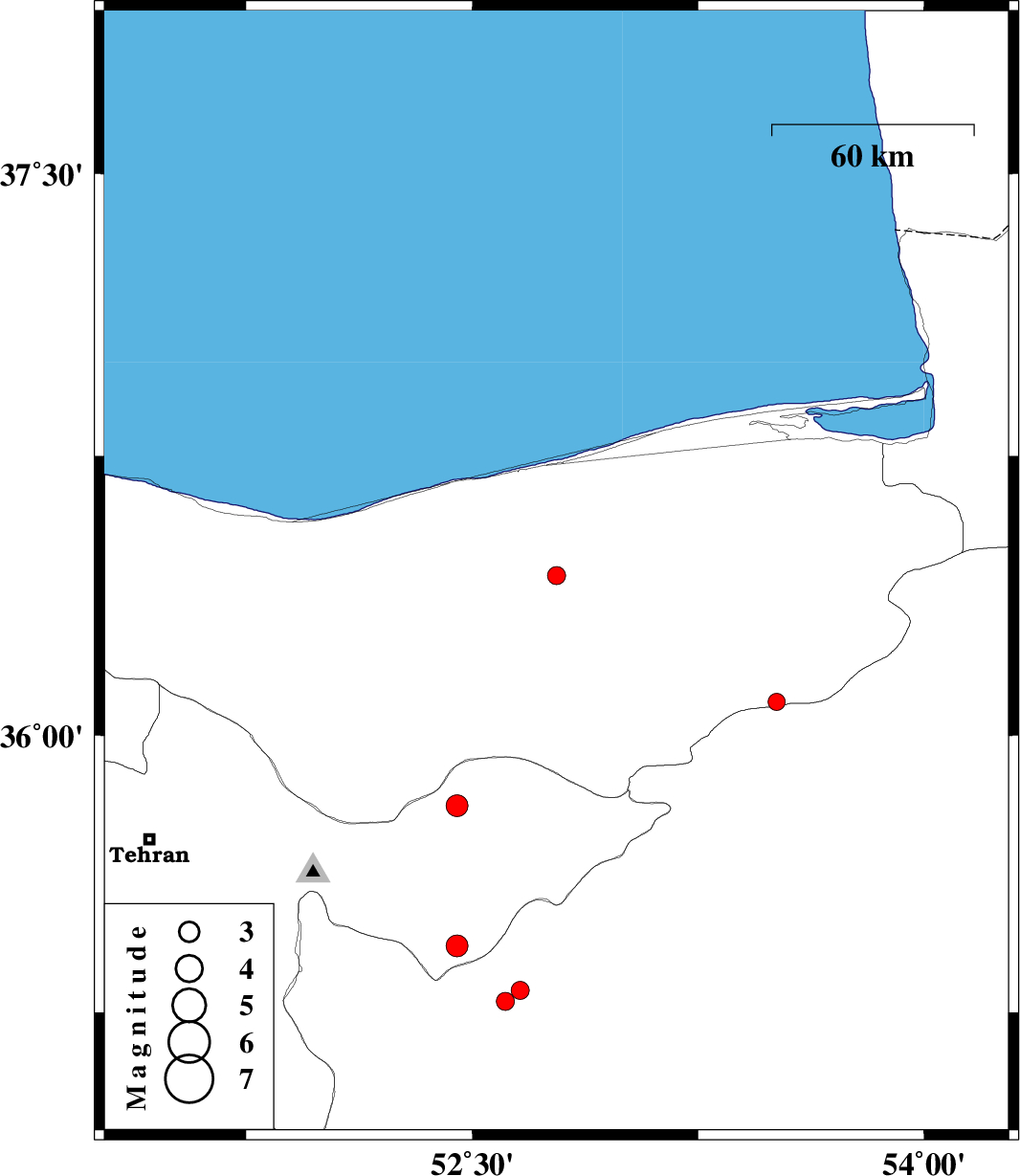 | 2007/10/18 | 20:48:38.9 | 00:18:38.9 | 35.81 | 52.45 | 6 | ML:3.2 | 29 km West of Firuzkuh, Tehran Province |