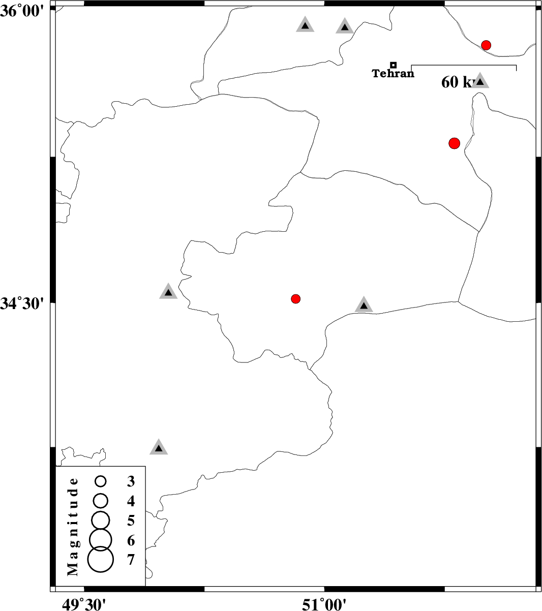 | 2007/09/30 | 20:32:09.6 | 00:02:09.6 | 35.32 | 51.81 | 9 | ML:3.1 | 12 km East of Varamin, Tehran Province |
