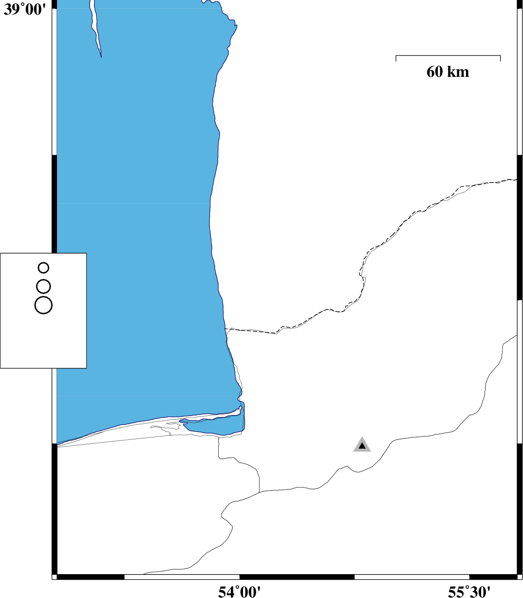 | 2007/09/30 | 13:39:56.1 | 17:09:56.1 | 36.23 | 54.64 | 14 | ML:3.3 | 27 km East of Damghan, Semnan Province |