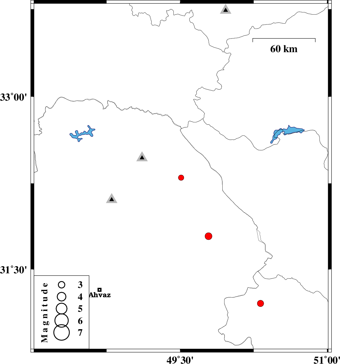 | 2007/10/24 | 19:11:02.1 | 22:41:02.1 | 31.79 | 49.79 | 18 | ML:3.2 | 8 km Izeh, Khoozestan Province |