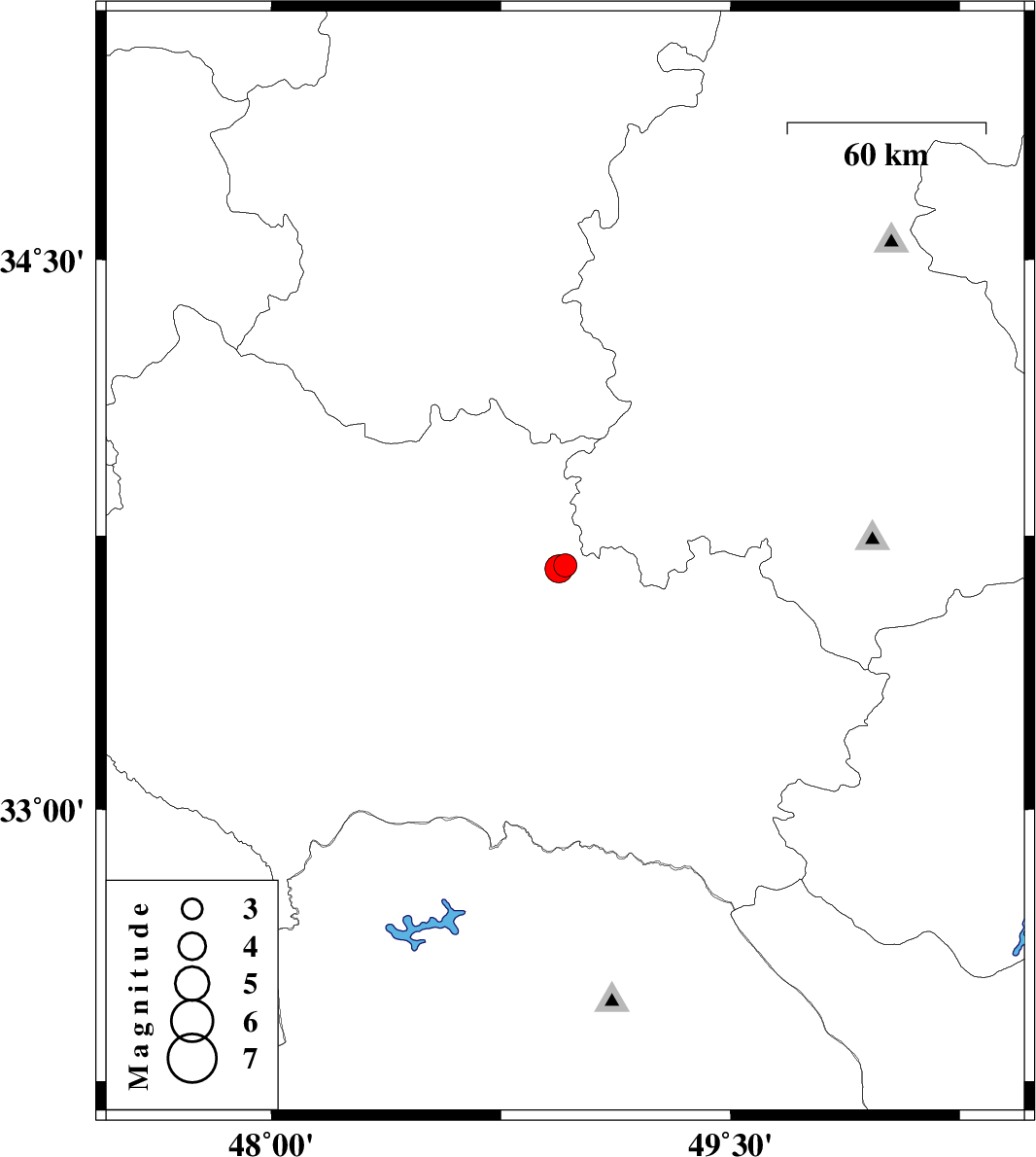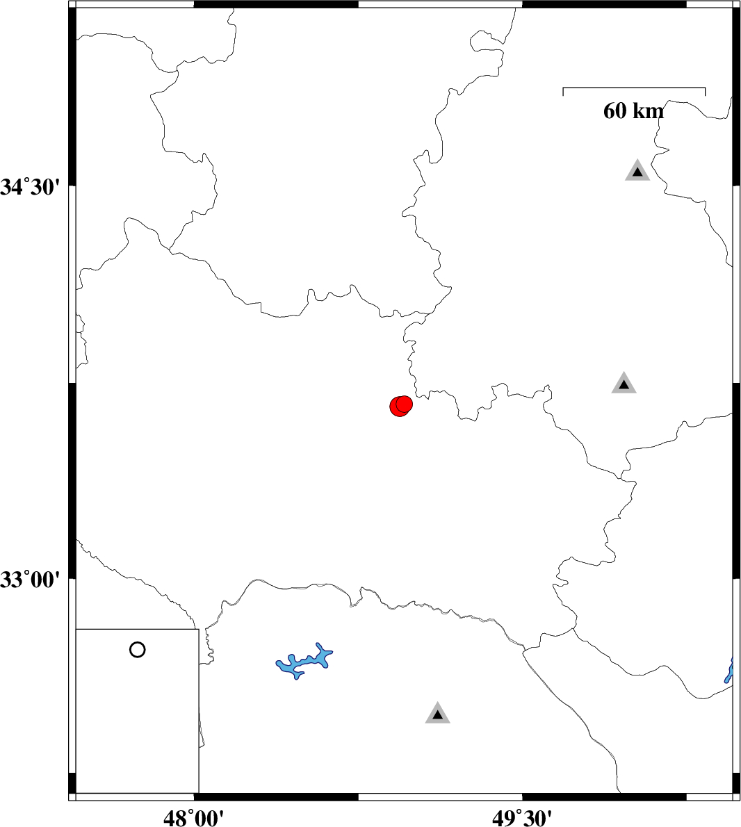 2007/11/08 | 09:40:37.7 | 13:10:37.7 | 33.66 | 48.94 | 15 | ML:4.1 | 23 km North-West of Dorud, Lorestan Province |