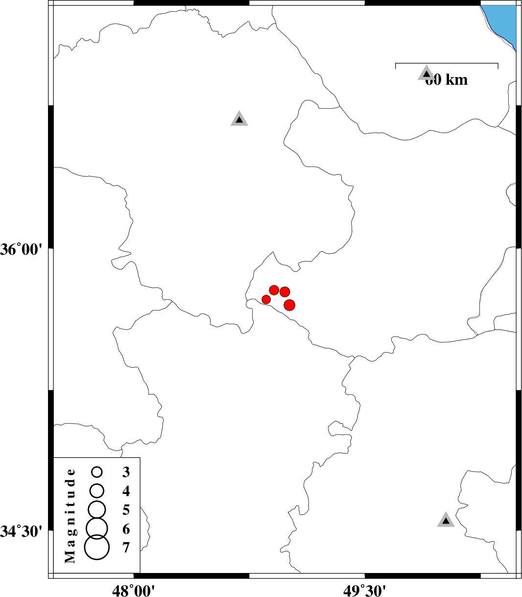 2007/10/15 | 03:54:21.2 | 07:24:21.2 | 35.78 | 48.91 | 15 | ML:2.8 | 45 km North-West of Razan, Hamedan Province | ||