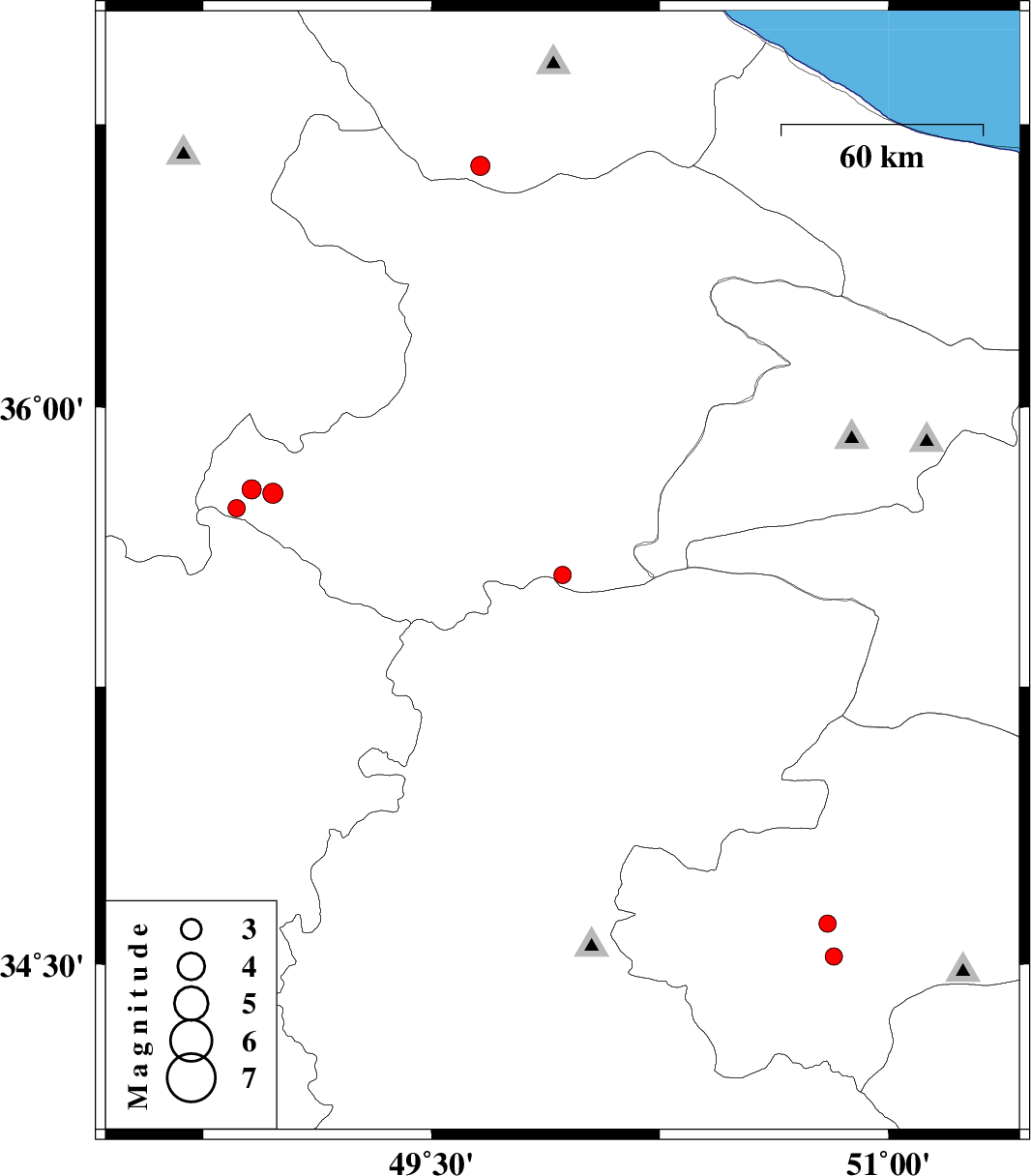 | 2007/11/10 | 12:53:51.3 | 16:23:51.3 | 36.64 | 49.66 | 14 | ML:2.8 | 29 km South-East of Rudbar, Gilan Province | ||