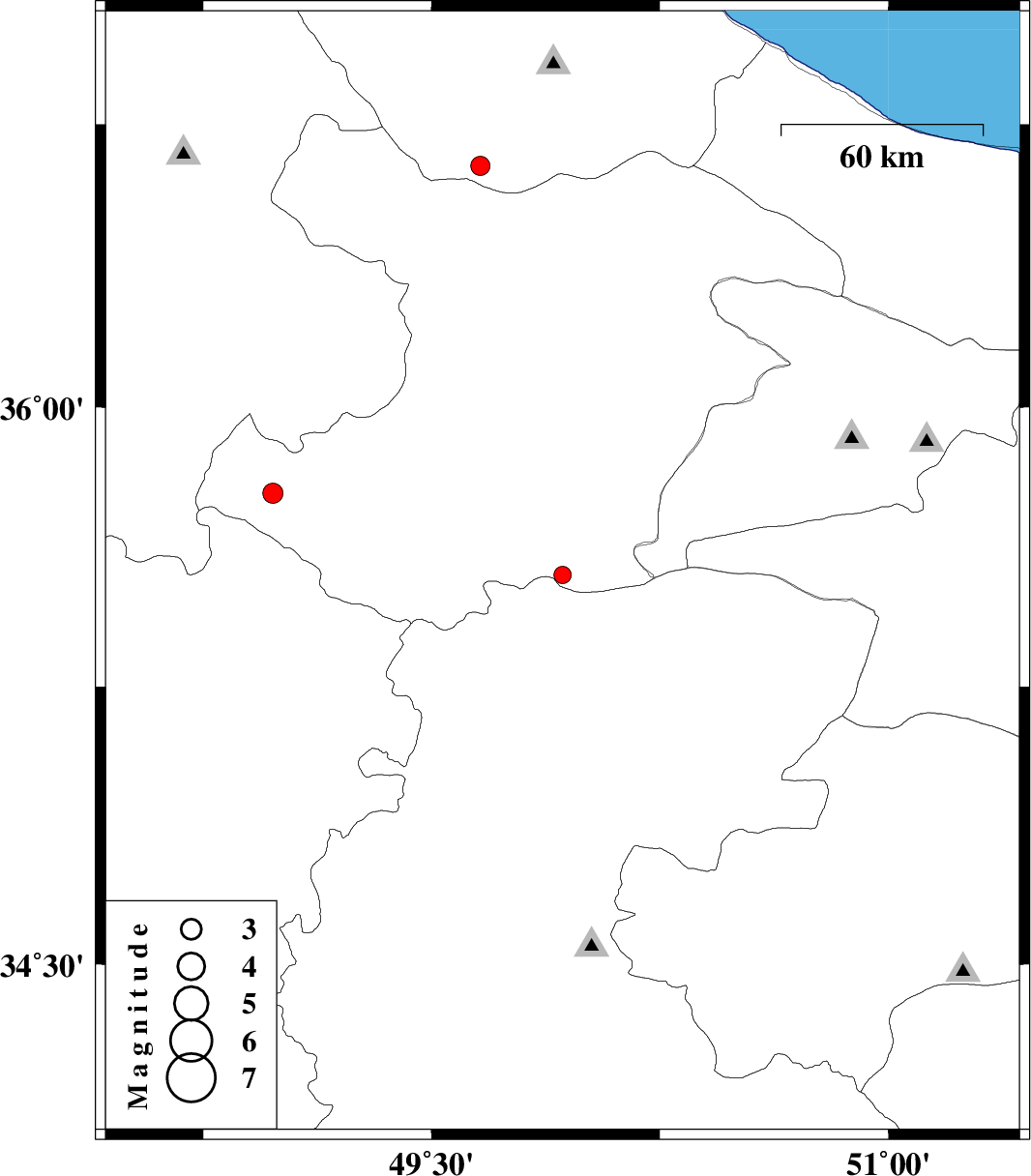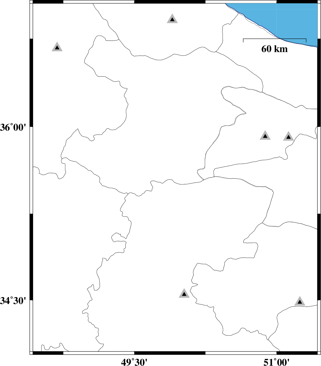 | 2007/11/10 | 12:53:51.3 | 16:23:51.3 | 36.64 | 49.66 | 14 | ML:2.8 | 29 km South-East of Rudbar, Gilan Province | ||