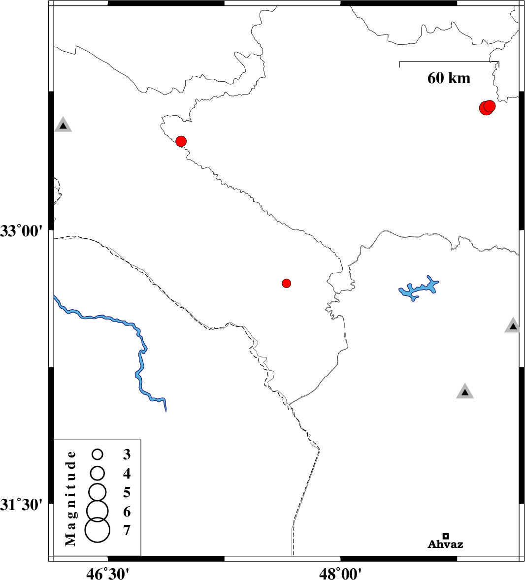 | 2007/11/11 | 11:06:46.1 | 14:36:46.1 | 32.71 | 47.65 | 14 | ML:2.6 | 29 km South-East of Abdanan, Ilam Province | ||