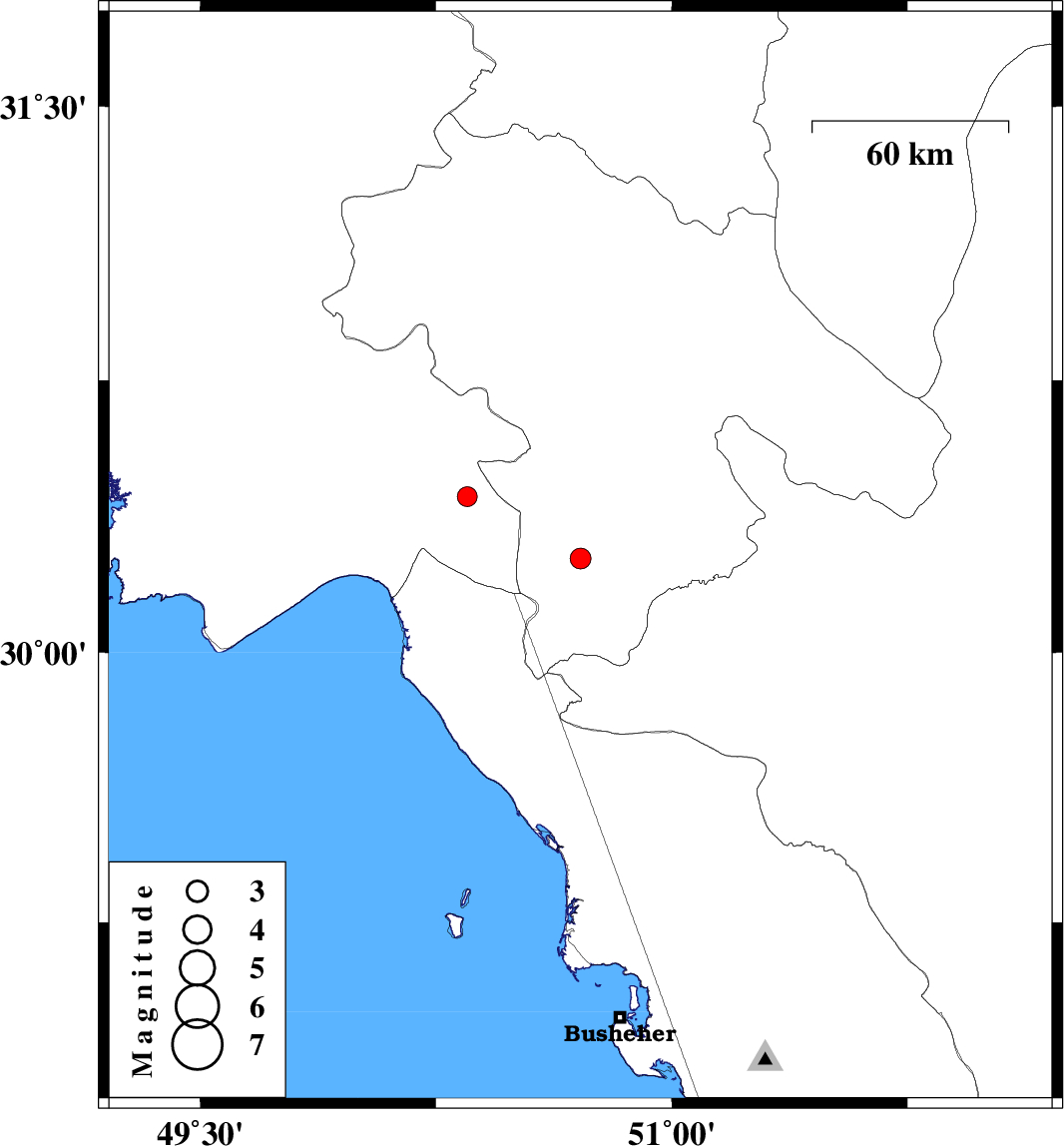 | 2007/11/15 | 01:04:00.5 | 04:34:00.5 | 30.43 | 50.35 | 14 | ML:2.8 | 21 km South-East of Behbahan, Khoozestan Province |