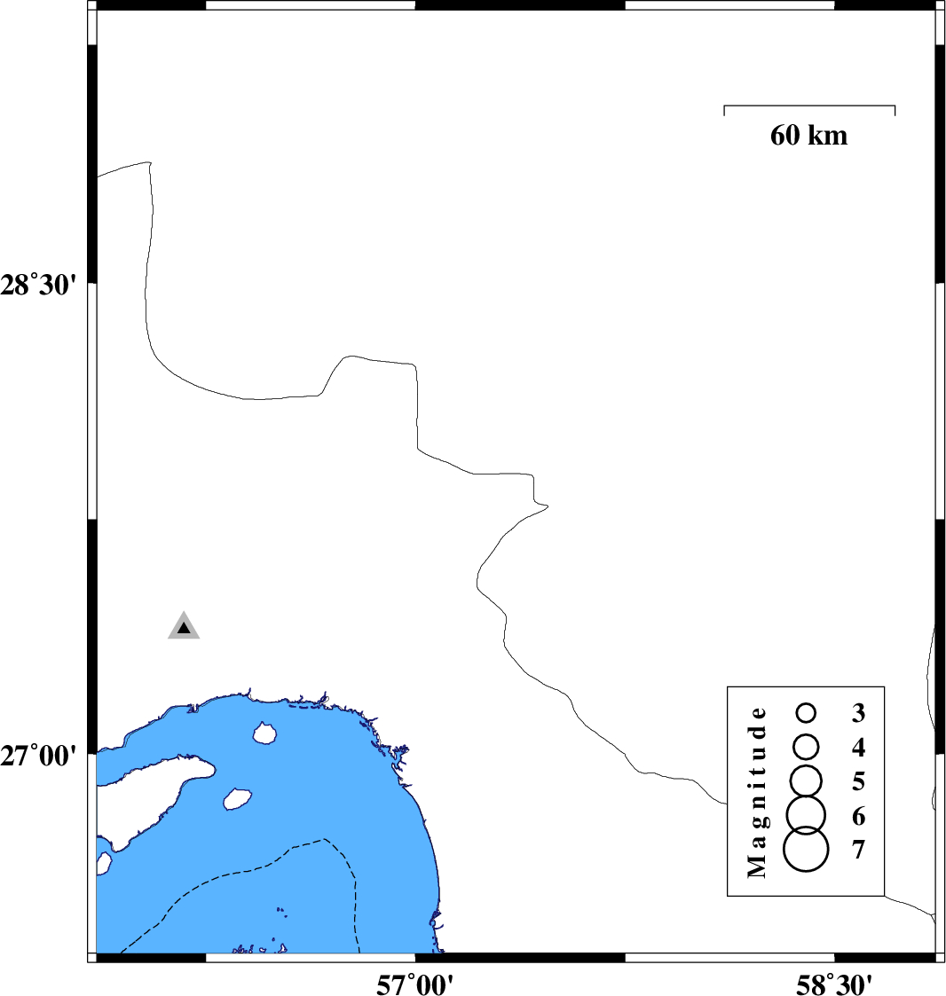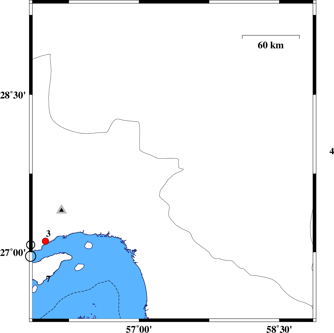 | 2007/11/18 | 14:35:07.1 | 18:05:07.1 | 27.82 | 57.27 | 43 | ML:4.7 | 43 km North of Dehbarez, Hormozgan Province | ||