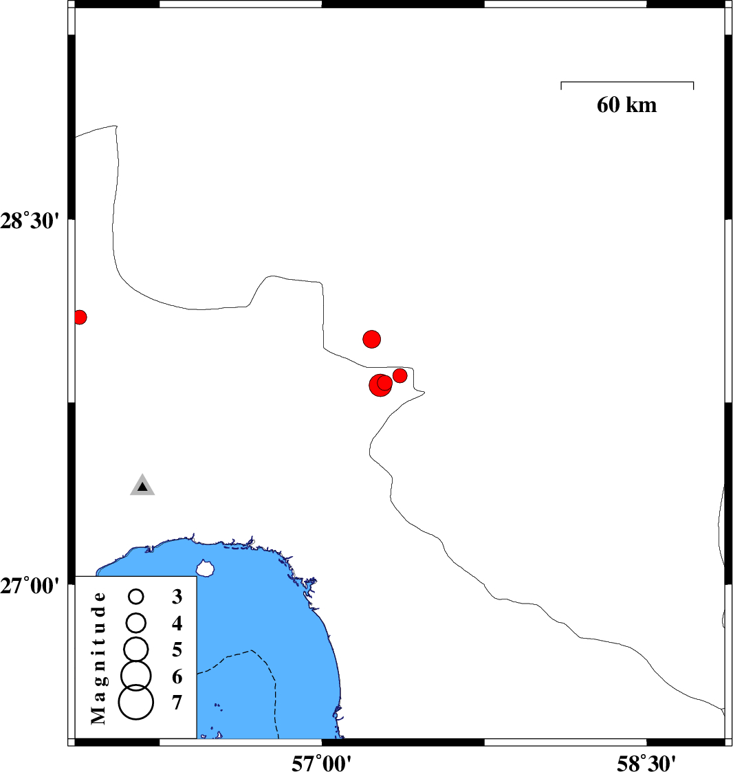 2007/11/18 18:37:50.3 22:07:50.3 27.8357.2944 ML:3.1 42 km South-West of Kahnuj, Kerman Province