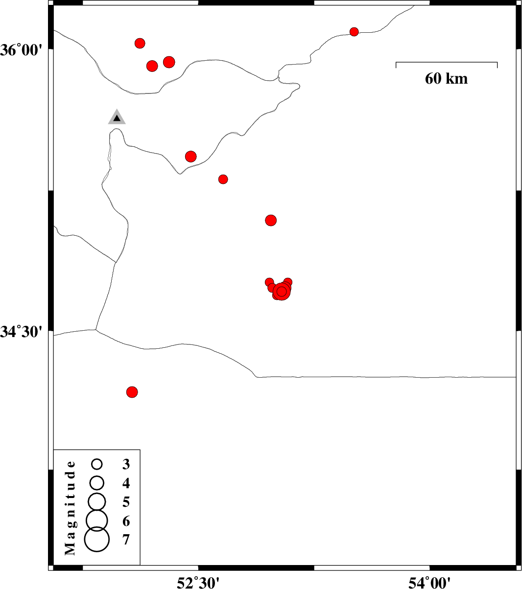 2007/11/04 08:01:50.2 11:31:50.2 35.0952.9717 ML:3.2 59 km South-East of Garmsar, Semnan Province