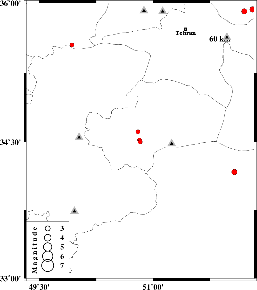 | 2007/11/11 | 06:28:48.3 | 09:58:48.3 | 35.55 | 49.93 | 17 | ML:2.6 | 28 km South-West of Buinzara, Ghazvin Province | ||