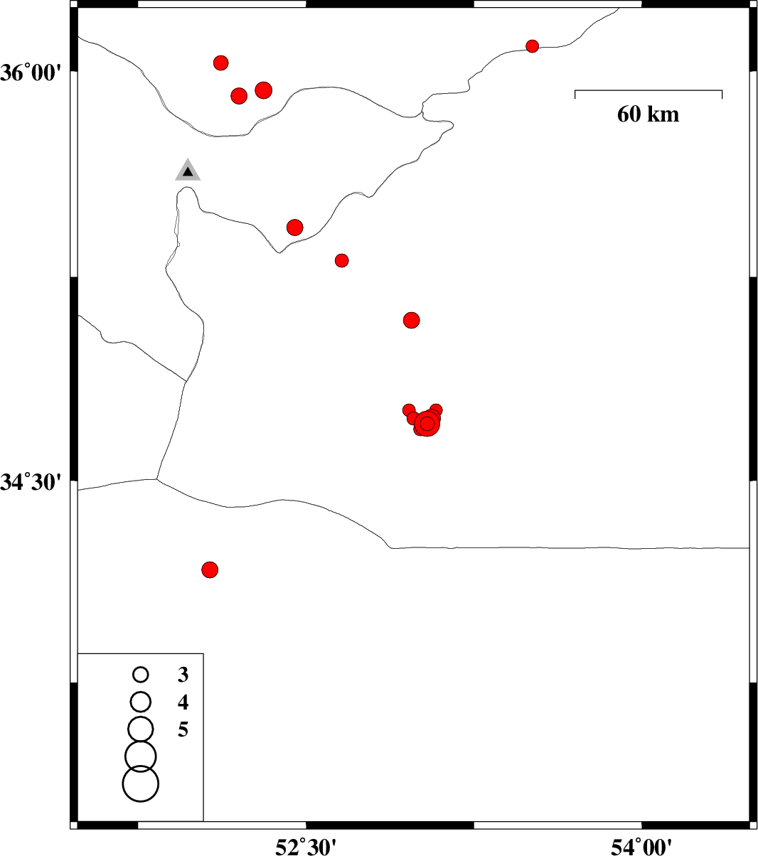 2007/11/19 16:58:48.3 20:28:48.3 34.7352.9827 ML:2.7 80 km South-East of Garmsar, Semnan Province