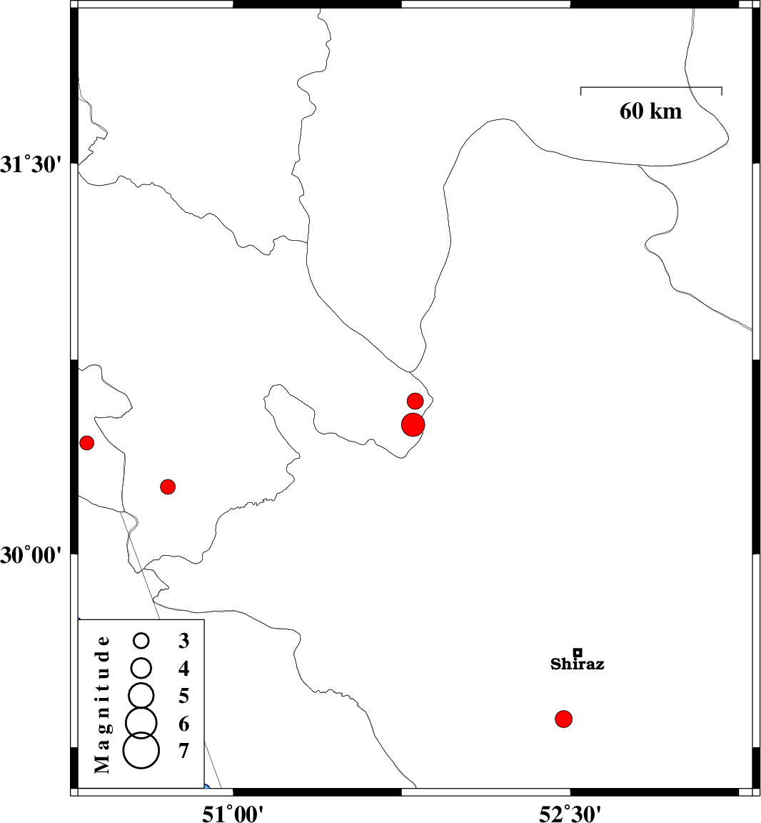 | 2007/11/15 | 02:37:41.1 | 06:07:41.1 | 29.36 | 52.47 | 46 | ML:3.4 | 29 km South of Shiraz, Fars Province | ||
