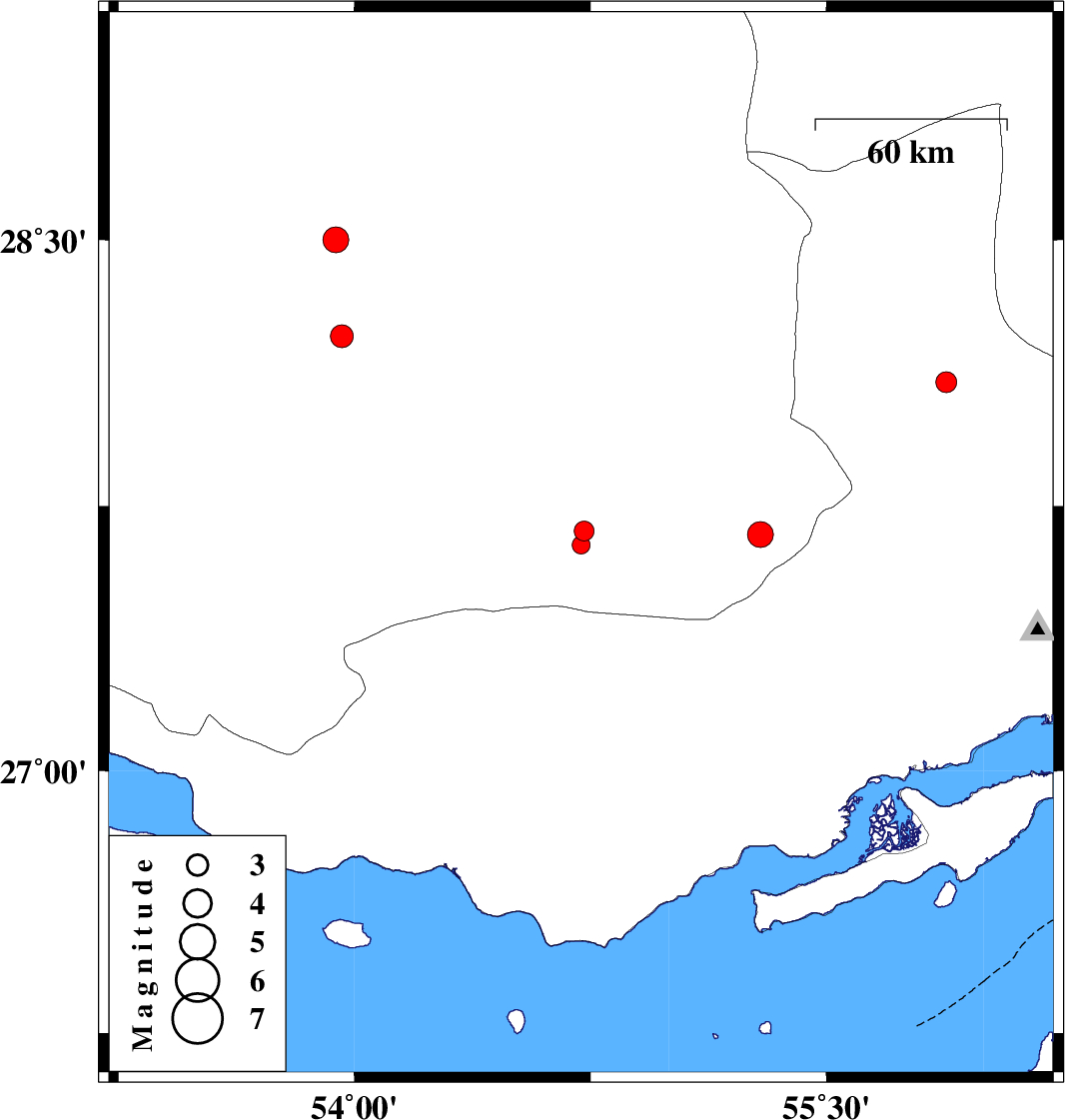 2007/11/18 18:22:43.7 21:52:43.7 28.155.8846 ML:3 23 km South of Hajiabad, Hormozgan Province