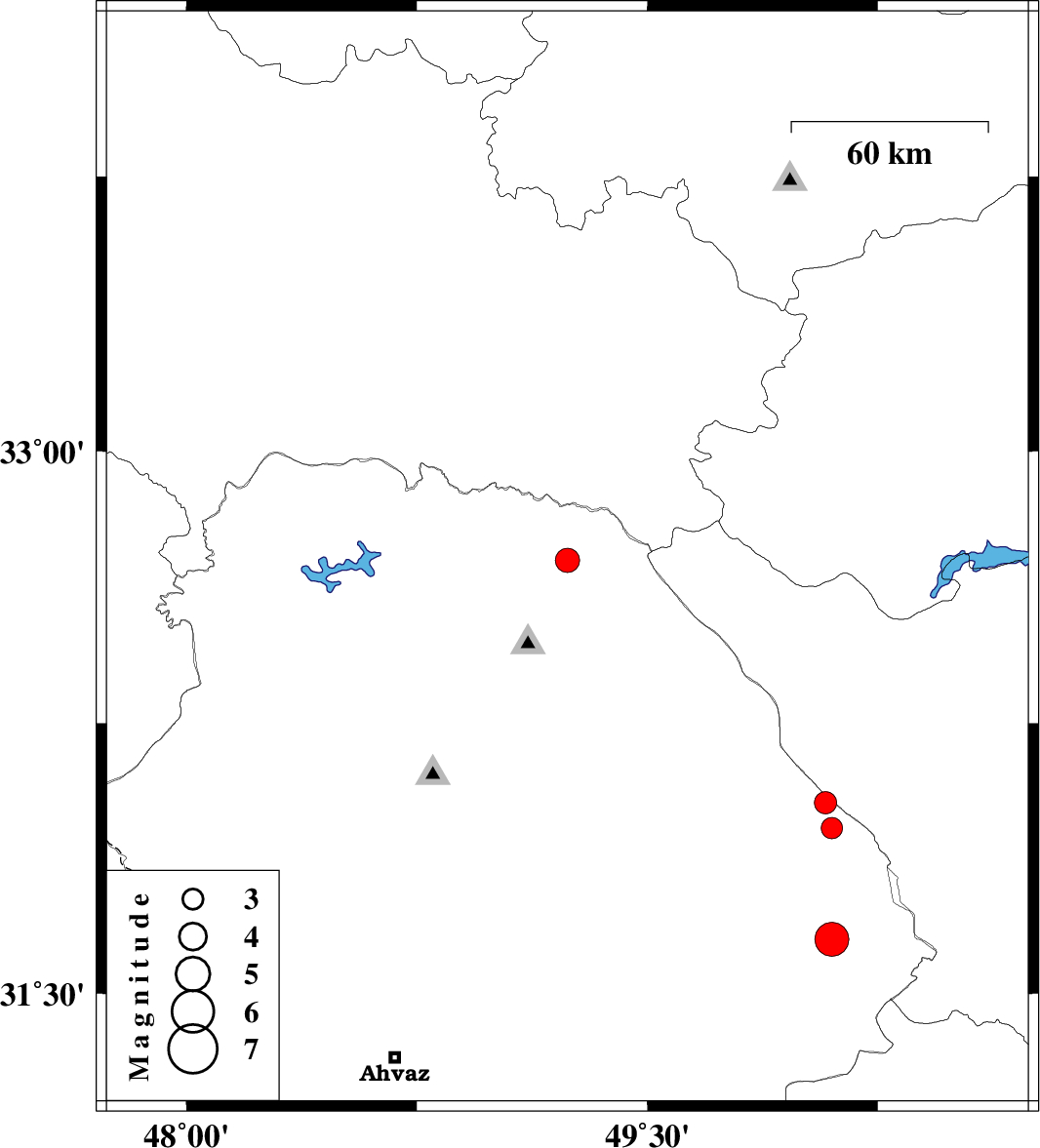 2007/11/20 | 19:07:26.3 | 22:37:26.3 | 31.96 | 50.1 | 14 | ML:3.1 | 25 km North-East of Izeh, Khoozestan Province | ||