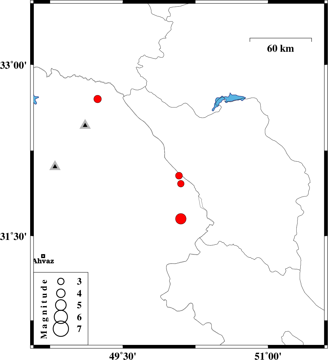 2007/11/20 22:30:26.5 02:00:26.5 32.0350.0814 ML:3.2 29 km North-East of Izeh, Khoozestan Province