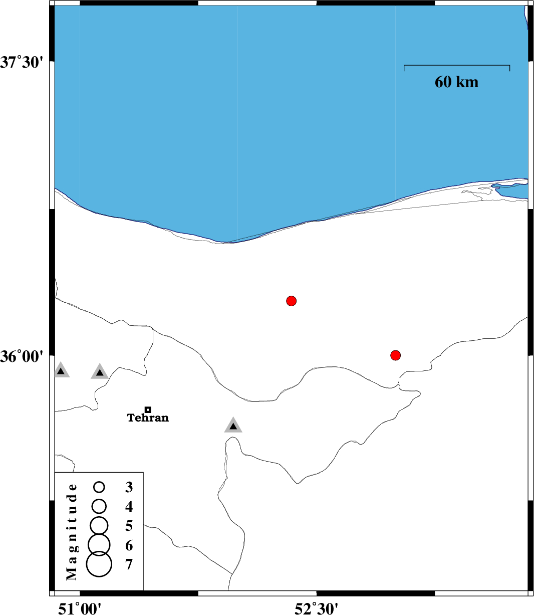 | 2007/11/25 | 01:25:21.5 | 04:55:21.5 | 36.28 | 52.34 | 9 | ML:2.8 | 21 km South of Amol, Mazandaran Province | ||