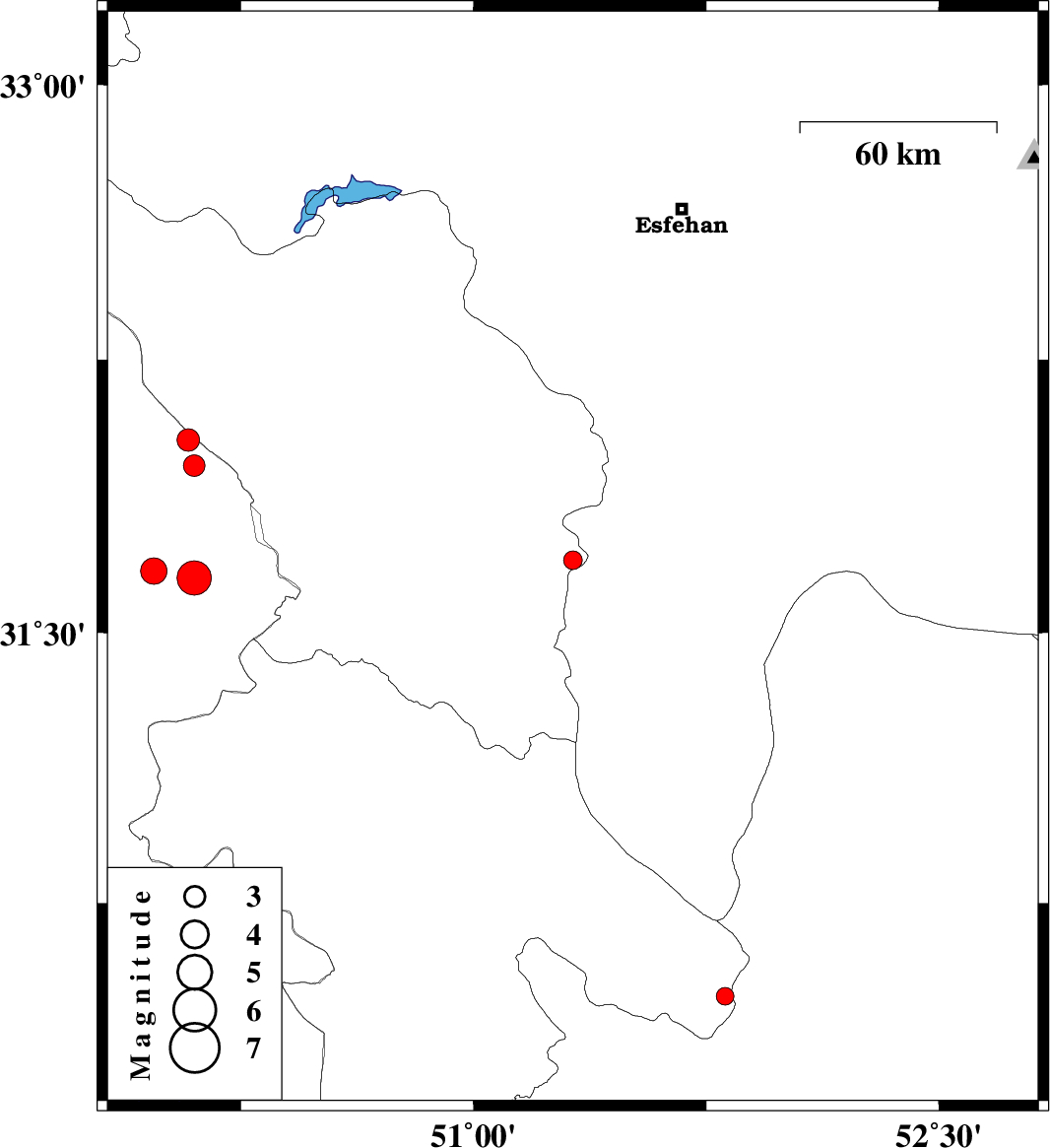 | 2007/11/27 | 02:44:19.9 | 06:14:19.9 | 31.7 | 51.32 | 14 | ML:2.7 | 30 km South of Borujen, Chaharmahal Bakhtiari Province | ||