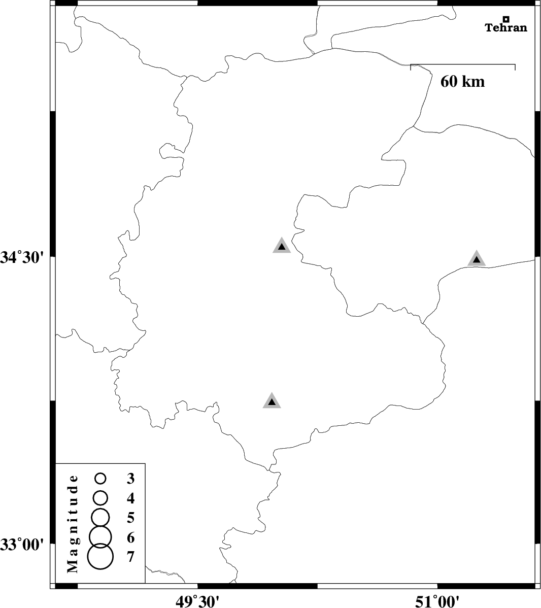 | 2007/11/29 | 13:52:10.8 | 17:22:10.8 | 34.29 | 50.11 | 7 | ML:3.5 | 28 km South-East of Ashtiyan, Markazi Province |