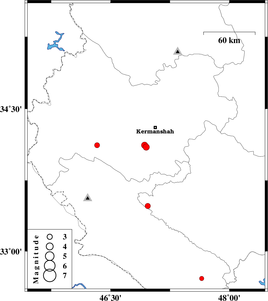 | 2007/11/30 | 23:39:59.9 | 03:09:59.9 | 34.1 | 46.95 | 15 | ML:3.7 | 25 km South-West of Kermanshah, Kermanshah Province | ||