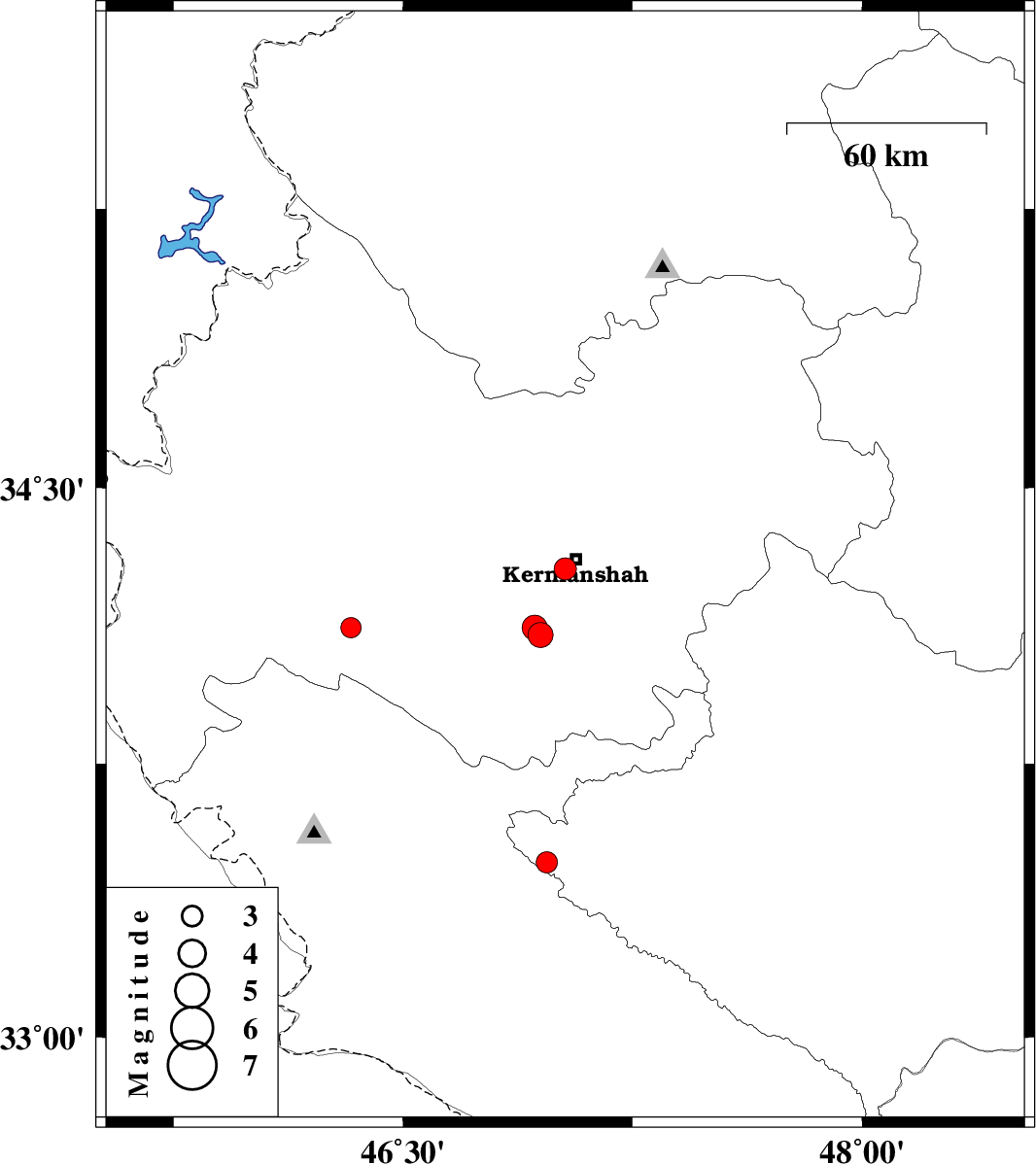 | 2007/11/30 | 23:39:59.9 | 03:09:59.9 | 34.1 | 46.95 | 15 | ML:3.7 | 25 km South-West of Kermanshah, Kermanshah Province | ||