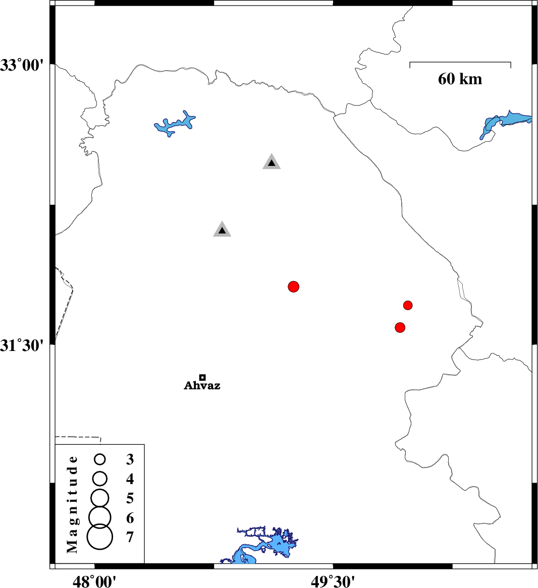| 2007/12/04 | 22:12:03.8 | 01:42:03.8 | 31.81 | 49.25 | 16 | ML:3.1 | 14 km South of Masjed Soleyman, Khoozestan Province | ||