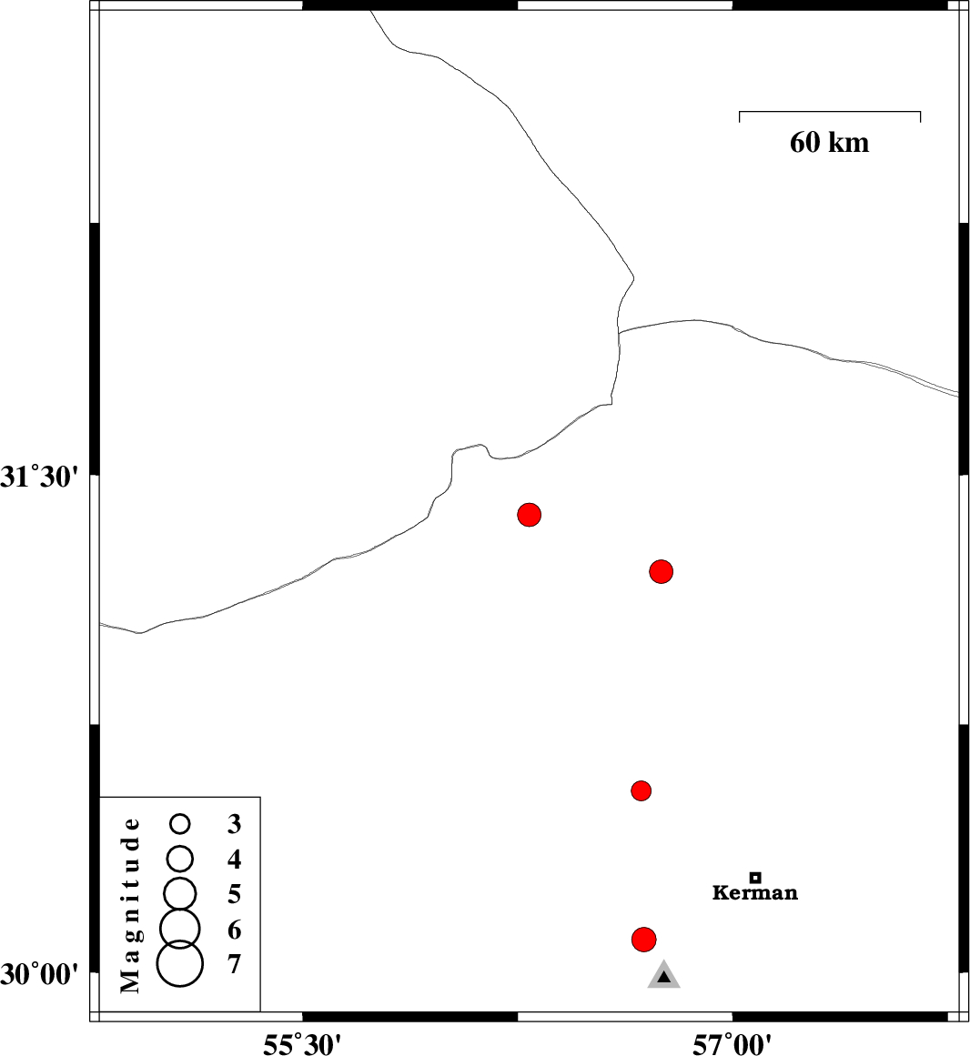 | 2007/12/01 | 16:55:22.5 | 20:25:22.5 | 30.1 | 56.69 | 14 | ML:3.8 | 22 km North-East of Bardsir, Kerman Province | ||