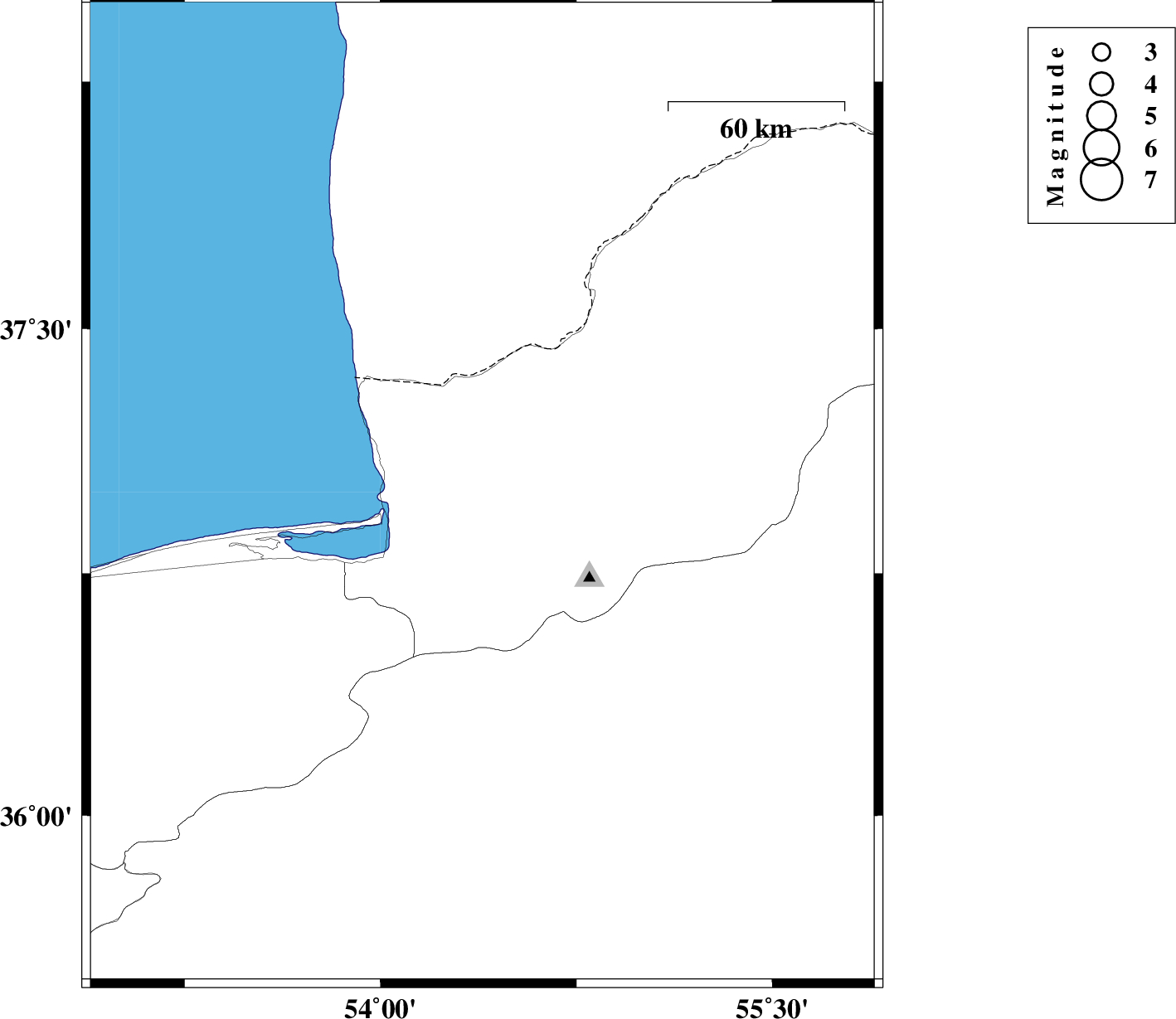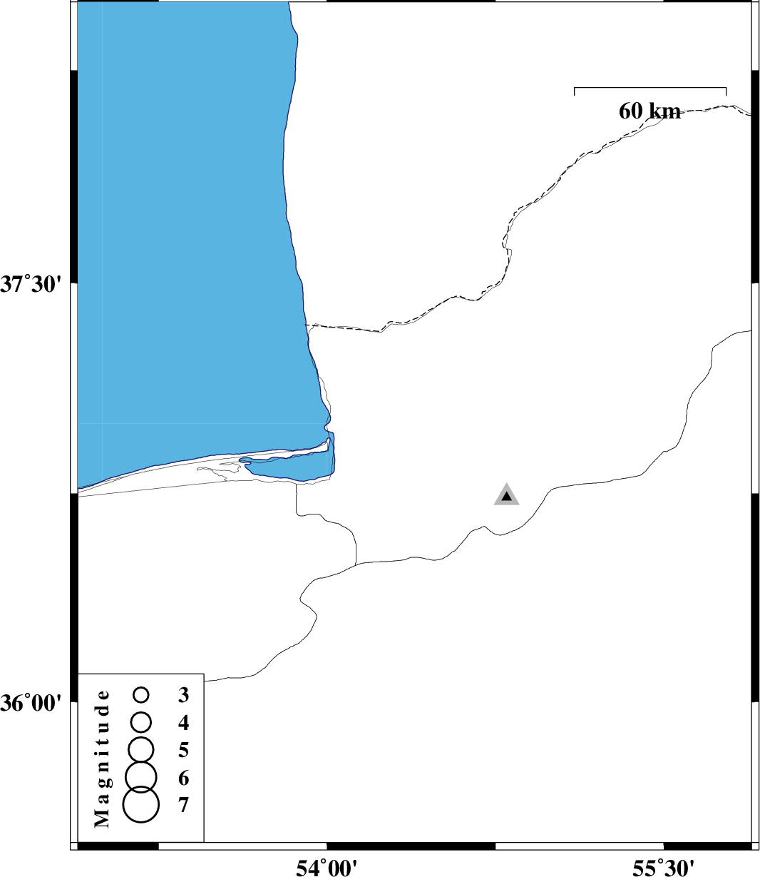 | 2007/12/10 | 23:49:56.8 | 03:19:56.8 | 36.99 | 54.39 | 14 | ML:2.9 | 6 km Aq Qaleh, Golestan Province |