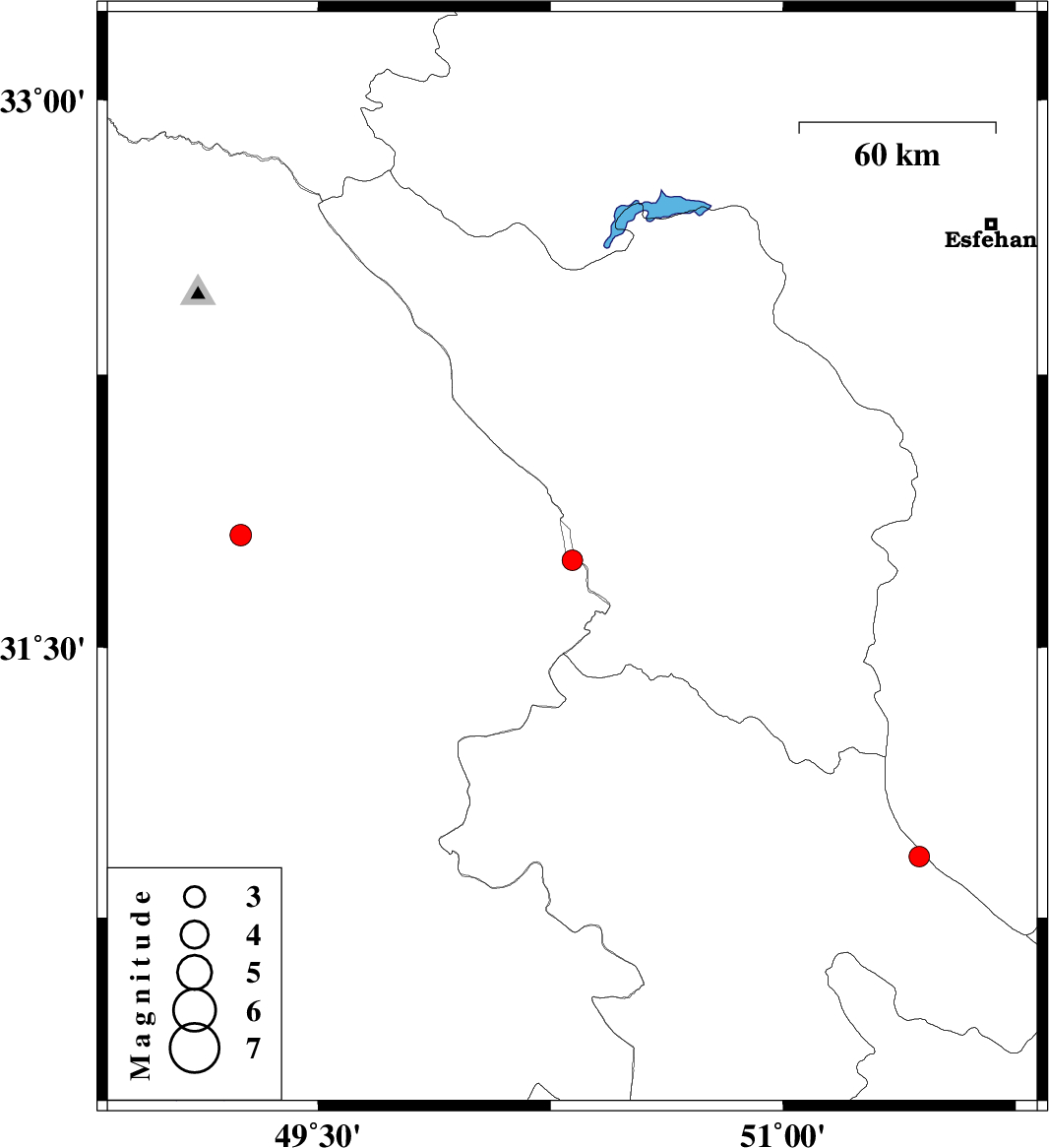 | 2007/12/04 | 22:12:03.8 | 01:42:03.8 | 31.81 | 49.25 | 16 | ML:3.1 | 14 km South of Masjed Soleyman, Khoozestan Province |