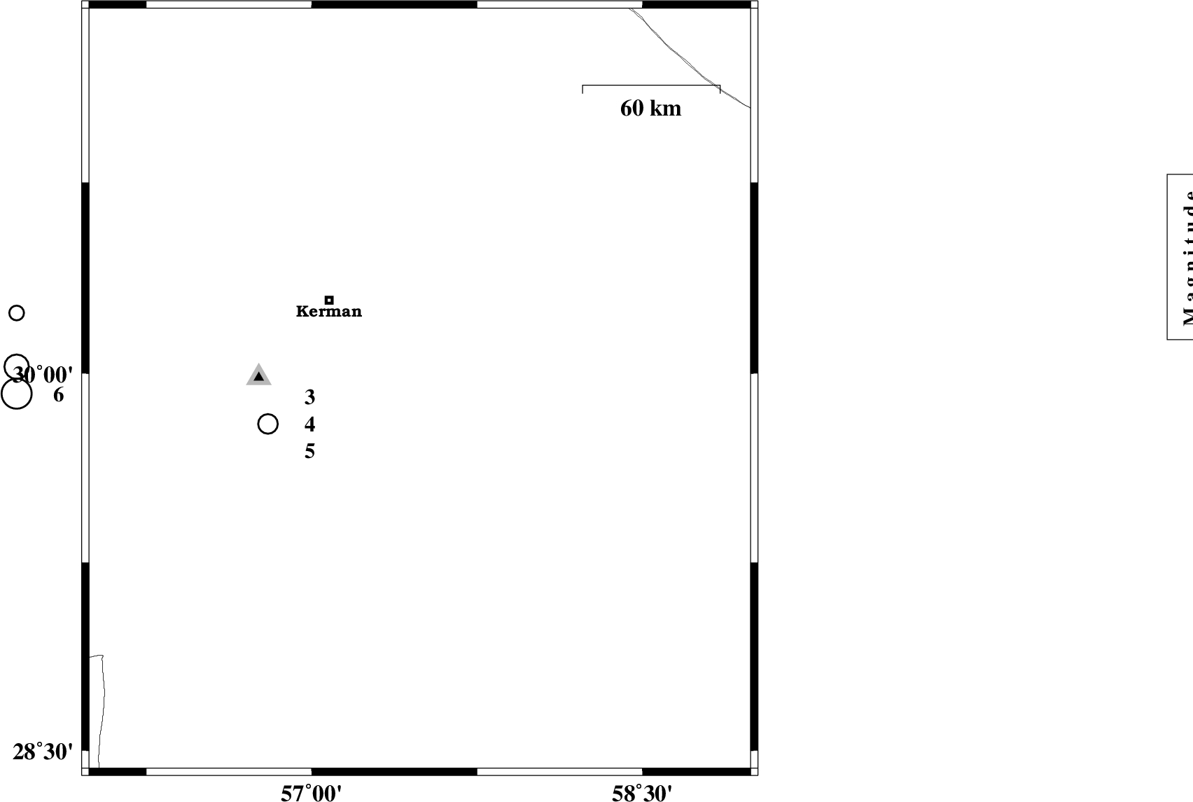 | 2007/12/13 | 01:05:05.1 | 04:35:05.1 | 29.93 | 57.49 | 15 | ML:2.9 | 55 km South-East of Kerman, Kerman Province | ||