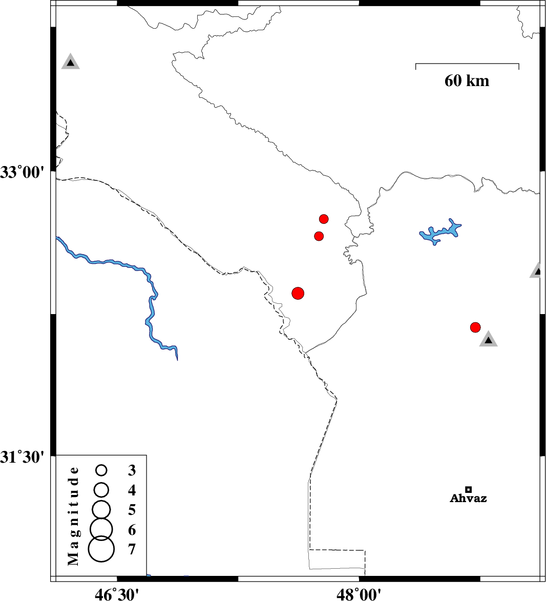 | 2007/12/12 | 09:56:46.7 | 13:26:46.7 | 32.66 | 47.75 | 14 | ML:2.5 | 40 km South-East of Abdanan, Ilam Province |