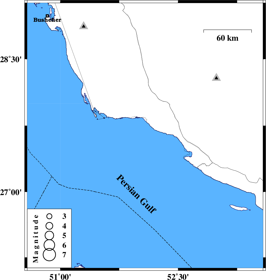 | 2007/12/18 | 01:02:21.2 | 04:32:21.2 | 27.63 | 52.08 | 24 | ML:3.7 | Persian Gulf, 21 km South of Bandar-e kangan |