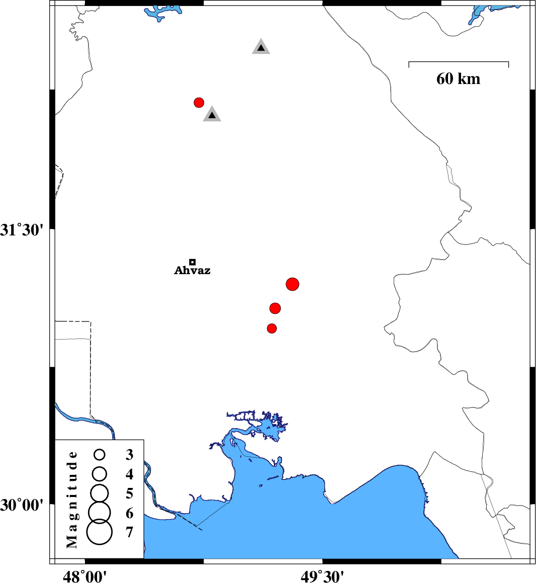 | 2007/12/15 | 11:07:02.2 | 14:37:02.2 | 32.18 | 48.72 | 10 | ML:2.8 | 19 km North-West of Shushtar, Khoozestan Province |