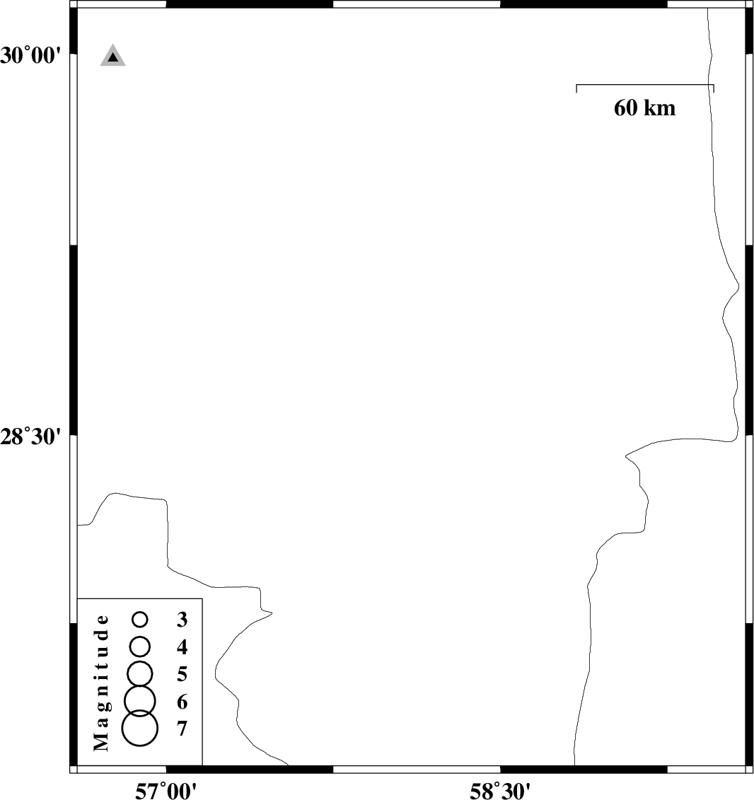 | 2007/12/22 | 10:04:39.7 | 13:34:39.7 | 28.68 | 58.1 | 14 | ML:3.6 | 35 km East of Jiroft, Kerman Province |