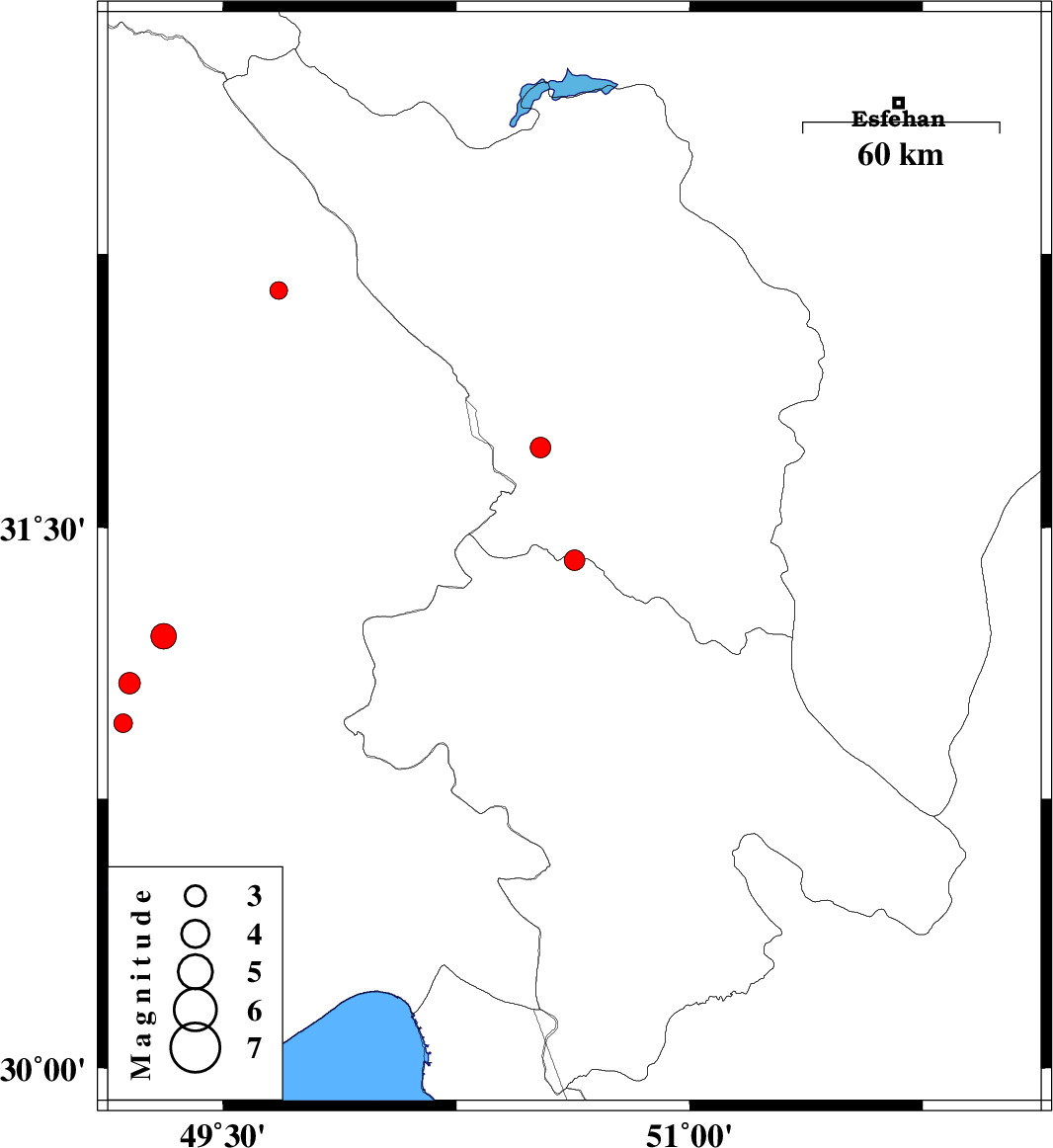 | 2007/12/22 | 05:38:22.2 | 09:08:22.2 | 31.72 | 50.52 | 15 | ML:2.9 | 33 km South-West of Ardel, Chaharmahal Bakhtiari Province | ||