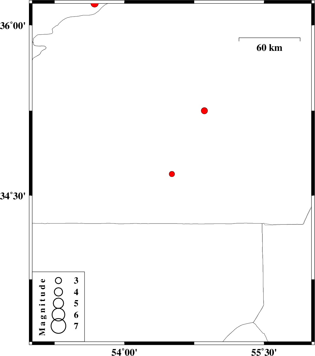 | 2007/12/05 | 13:44:20.6 | 17:14:20.6 | 35.25 | 54.86 | 17 | ML:3.1 | 112 km South-East of Damghan, Semnan Province |