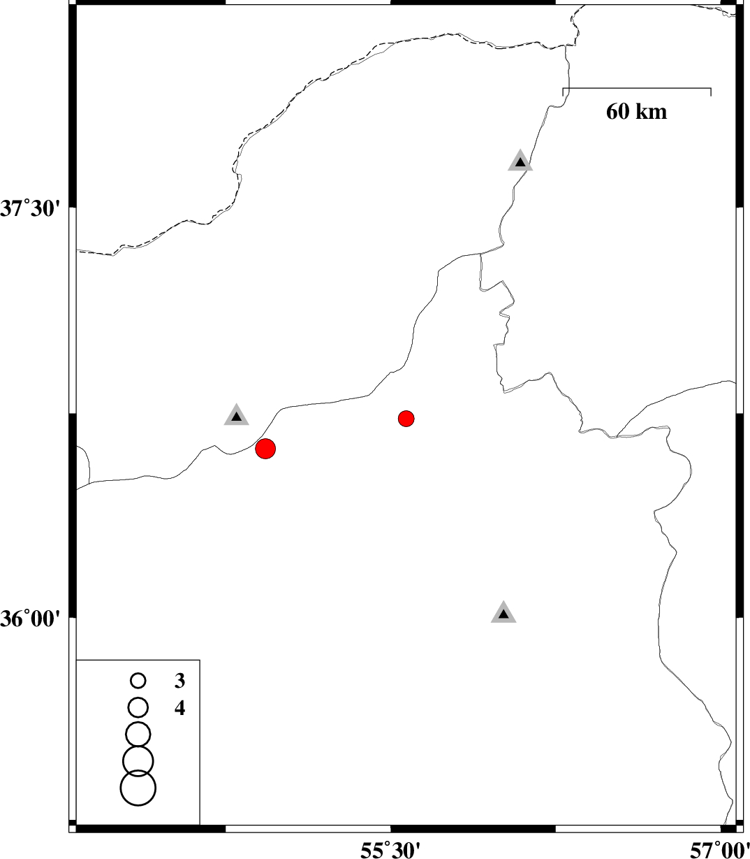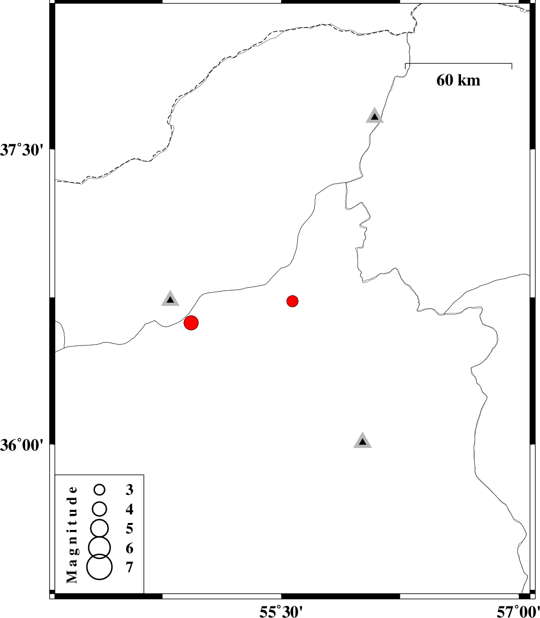 | 2007/12/20 | 23:20:03.1 | 02:50:03.1 | 36.62 | 54.93 | 16 | ML:4.1 | 22 km North of Shahrud, Semnan Province |