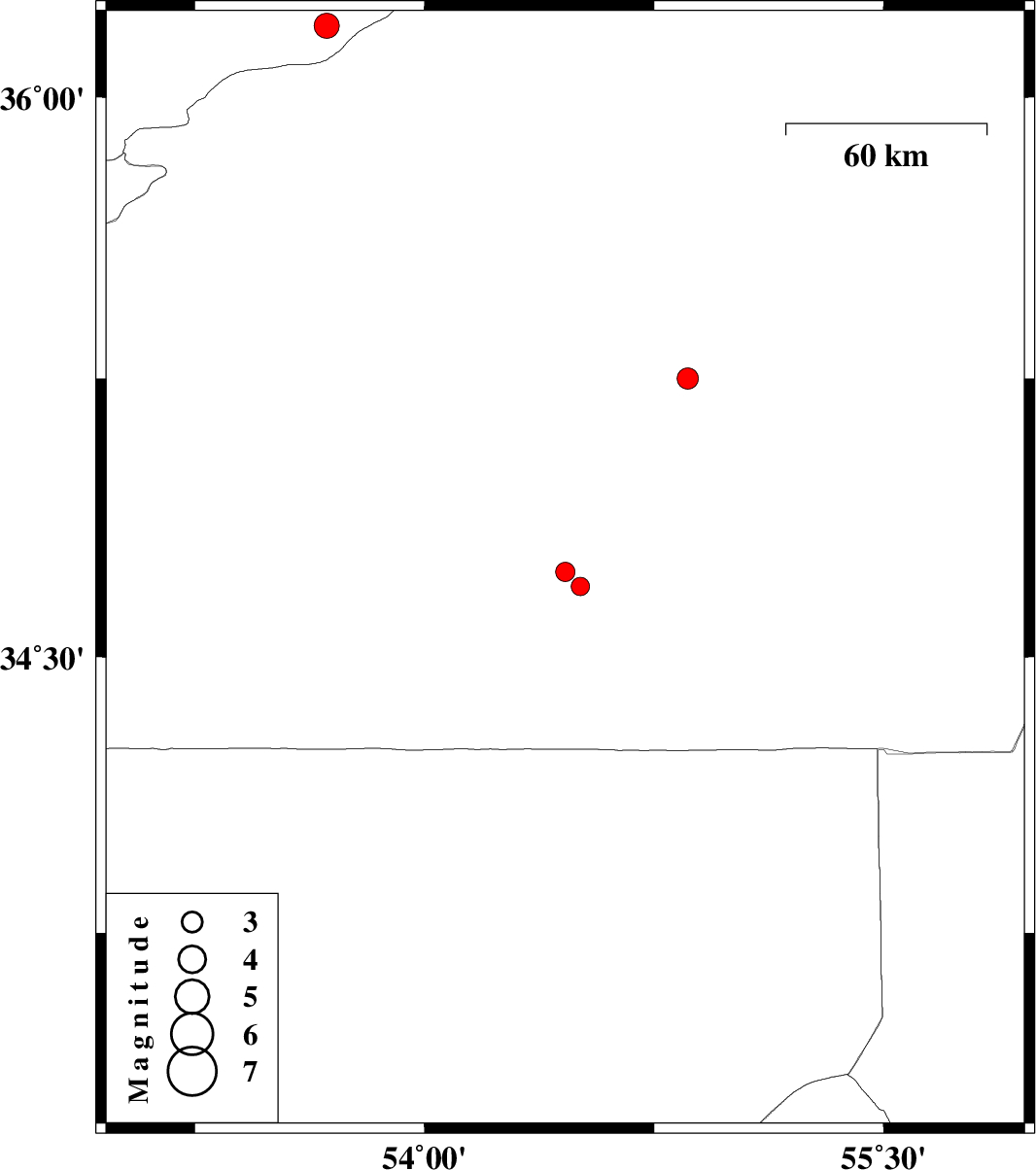 | 2007/12/05 | 13:44:20.6 | 17:14:20.6 | 35.25 | 54.86 | 17 | ML:3.1 | 112 km South-East of Damghan, Semnan Province |