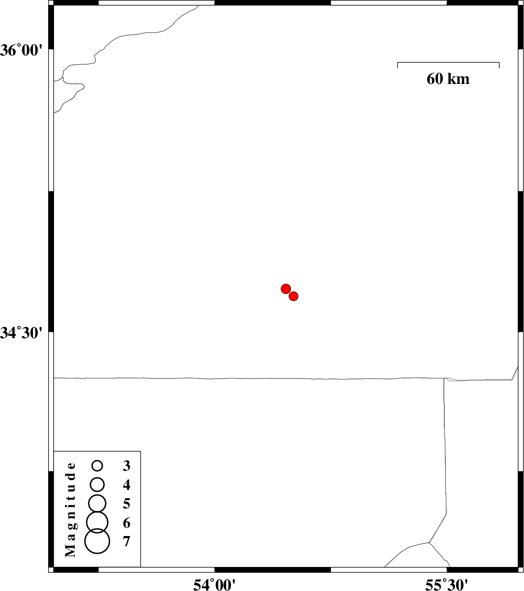 | 2007/12/25 | 09:08:20.9 | 12:38:20.9 | 34.73 | 54.46 | 14 | ML:2.8 | 133 km South-East of Semnan, Semnan Province | ||