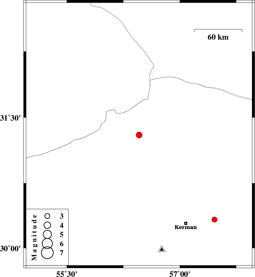 | 2007/12/20 | 01:53:24.1 | 05:23:24.1 | 30.33 | 57.46 | 31 | ML:3.3 | 36 km East of Kerman, Kerman Province |