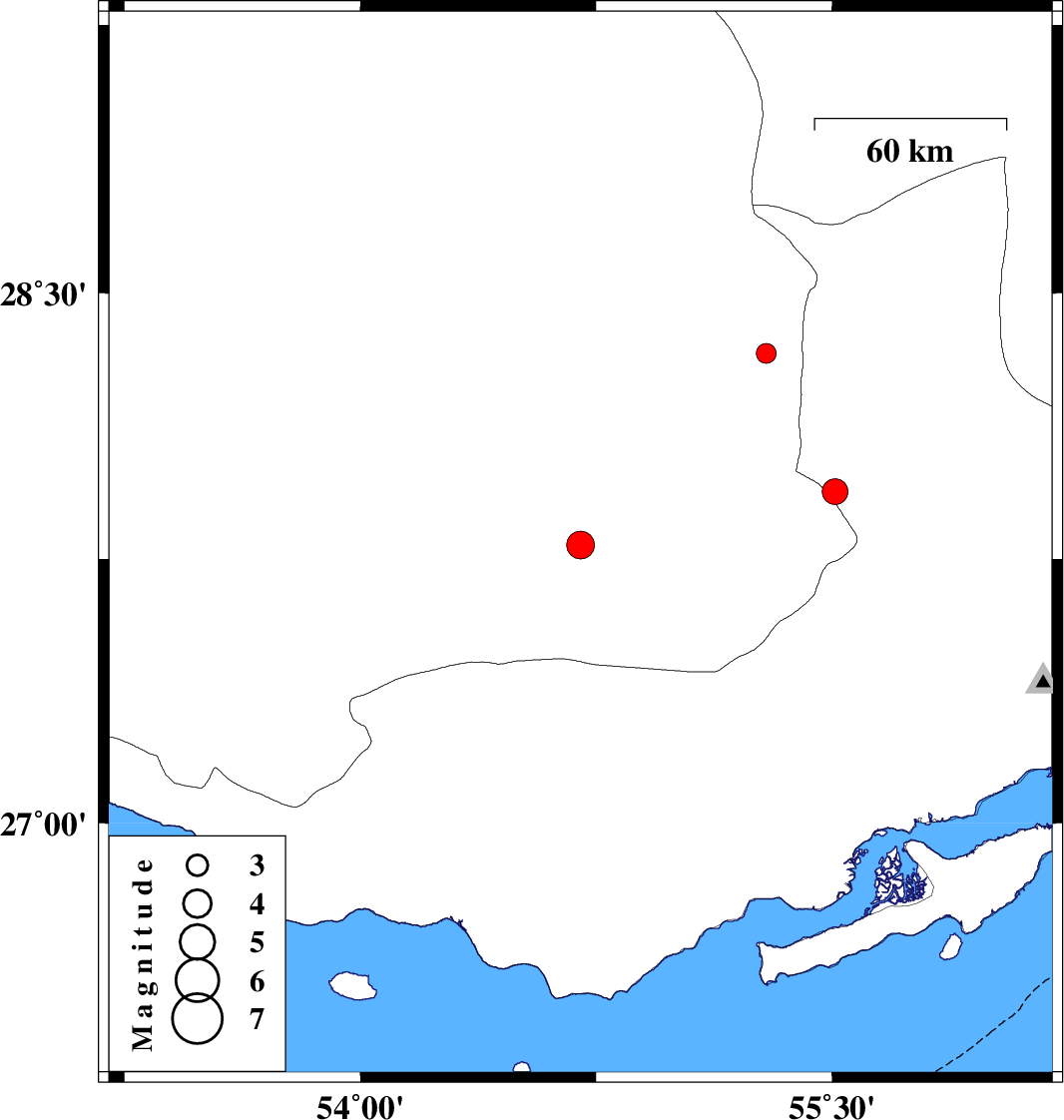 | 2008/01/05 | 00:37:47.2 | 04:07:47.2 | 27.79 | 54.7 | 14 | ML:4 | 37 km North-East of Lar, Fars Province | ||