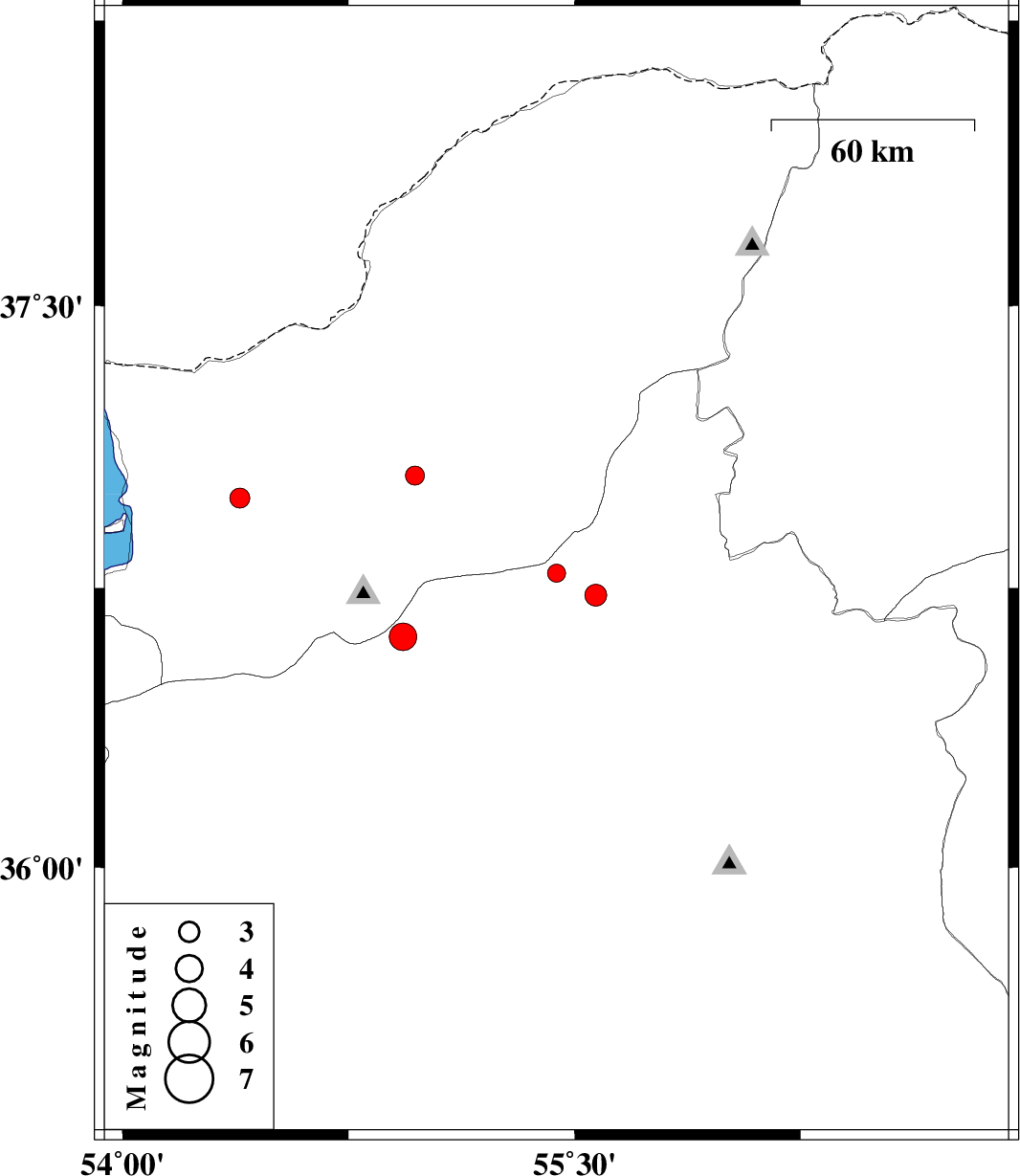 | 2007/12/20 | 23:20:03.1 | 02:50:03.1 | 36.62 | 54.93 | 16 | ML:4.1 | 22 km North of Shahrud, Semnan Province | ||