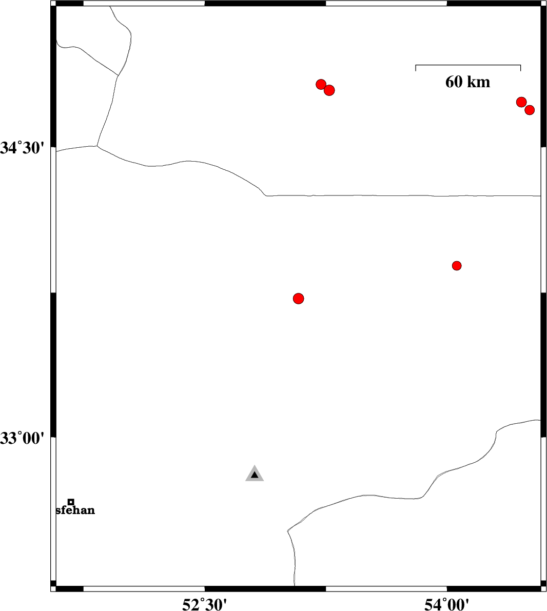 | 2008/01/09 | 09:54:49.4 | 13:24:49.4 | 33.72 | 53.08 | 14 | ML:3 | 75 km North-East of Ardestan, Esfahan Province | ||