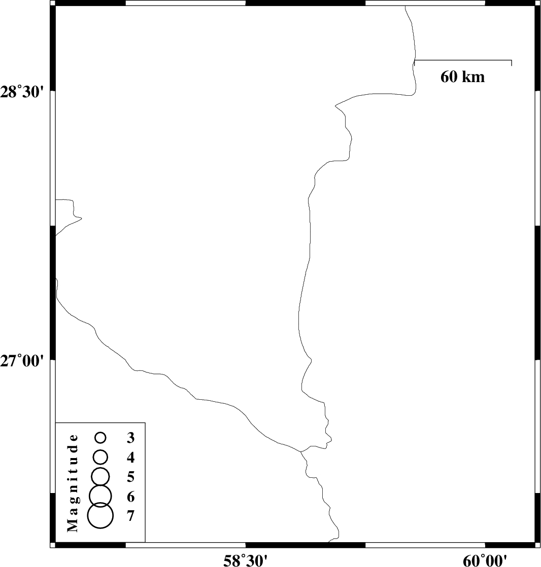 | 2008/01/11 | 05:55:16.5 | 09:25:16.5 | 27.47 | 58.81 | 18 | ML:3.2 | 121 km South-East of Kahnuj, Kerman Province |