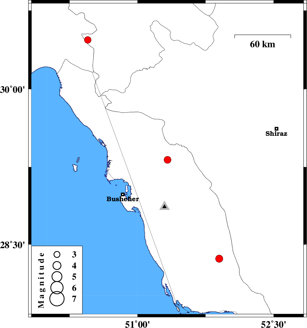 | 2008/01/13 | 14:30:44.7 | 18:00:44.7 | 29.32 | 51.33 | 18 | ML:3.5 | 13 km East of Borazjan, Bushehr Province | ||