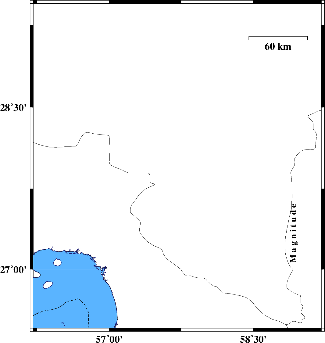 2008/01/01 | 00:27:43.2 | 03:57:43.2 | 29.11 | 58.08 | 14 | ML:2.9 | 27 km West of Bam, Kerman Province | ||