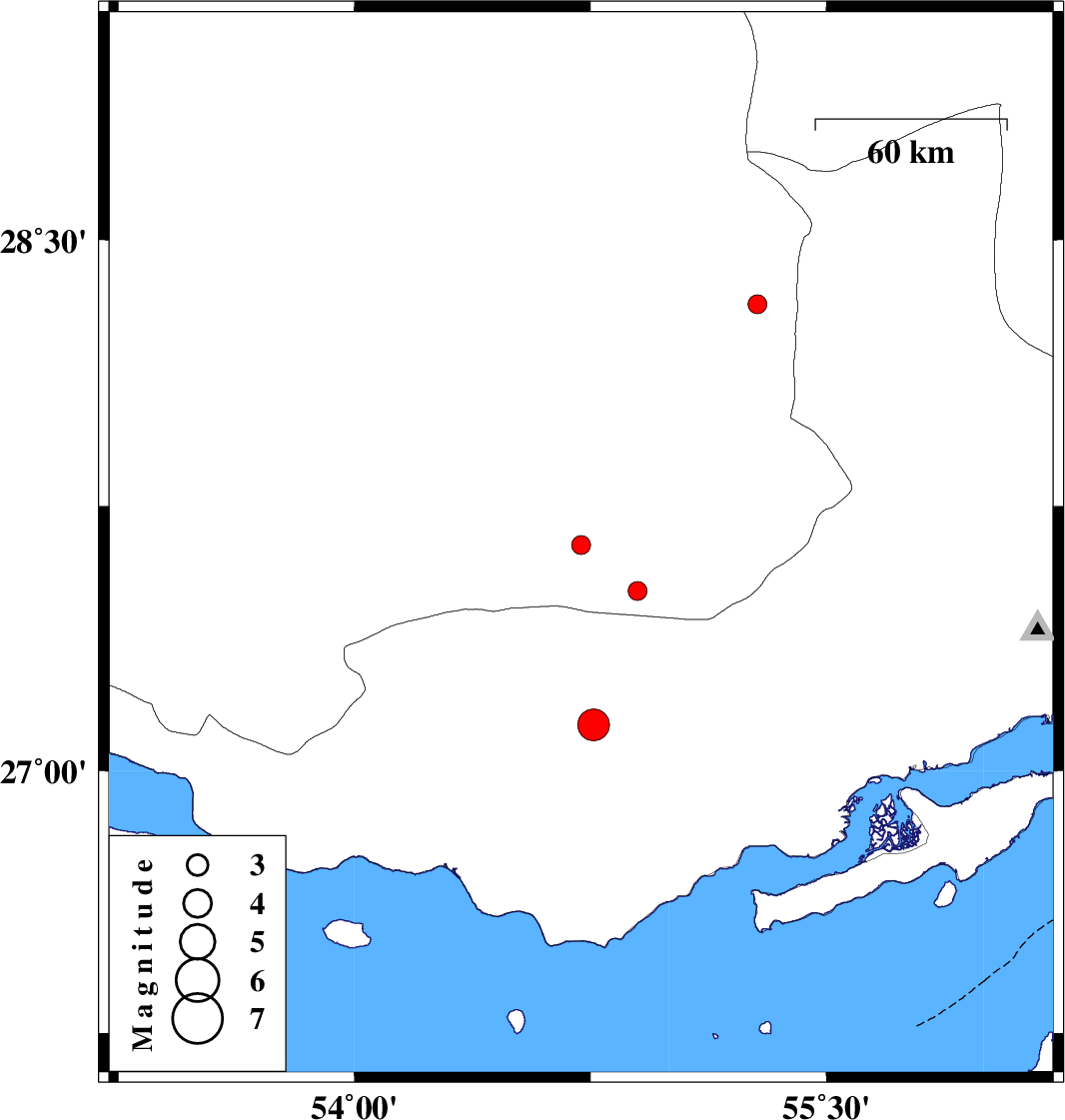 | 2008/01/18 | 11:17:51.8 | 14:47:51.8 | 27.13 | 54.76 | 30 | ML:4.5 | 39 km East of Bastak, Hormozgan Province |