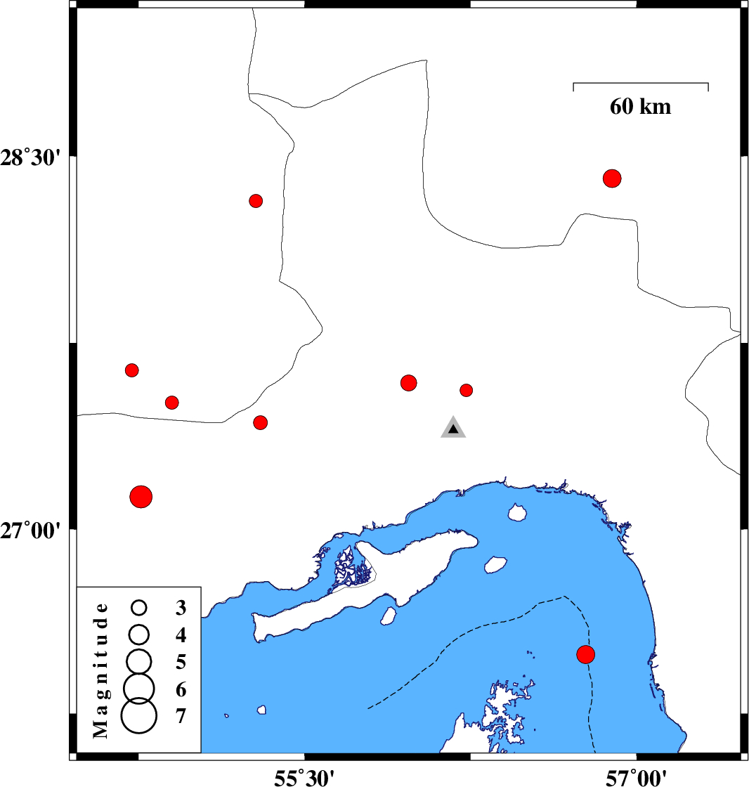 | 2008/01/23 | 22:09:19.3 | 01:39:19.3 | 26.49 | 56.77 | 18 | ML:3.6 | Oman Sea, 72 km South-East of Qeshm | ||