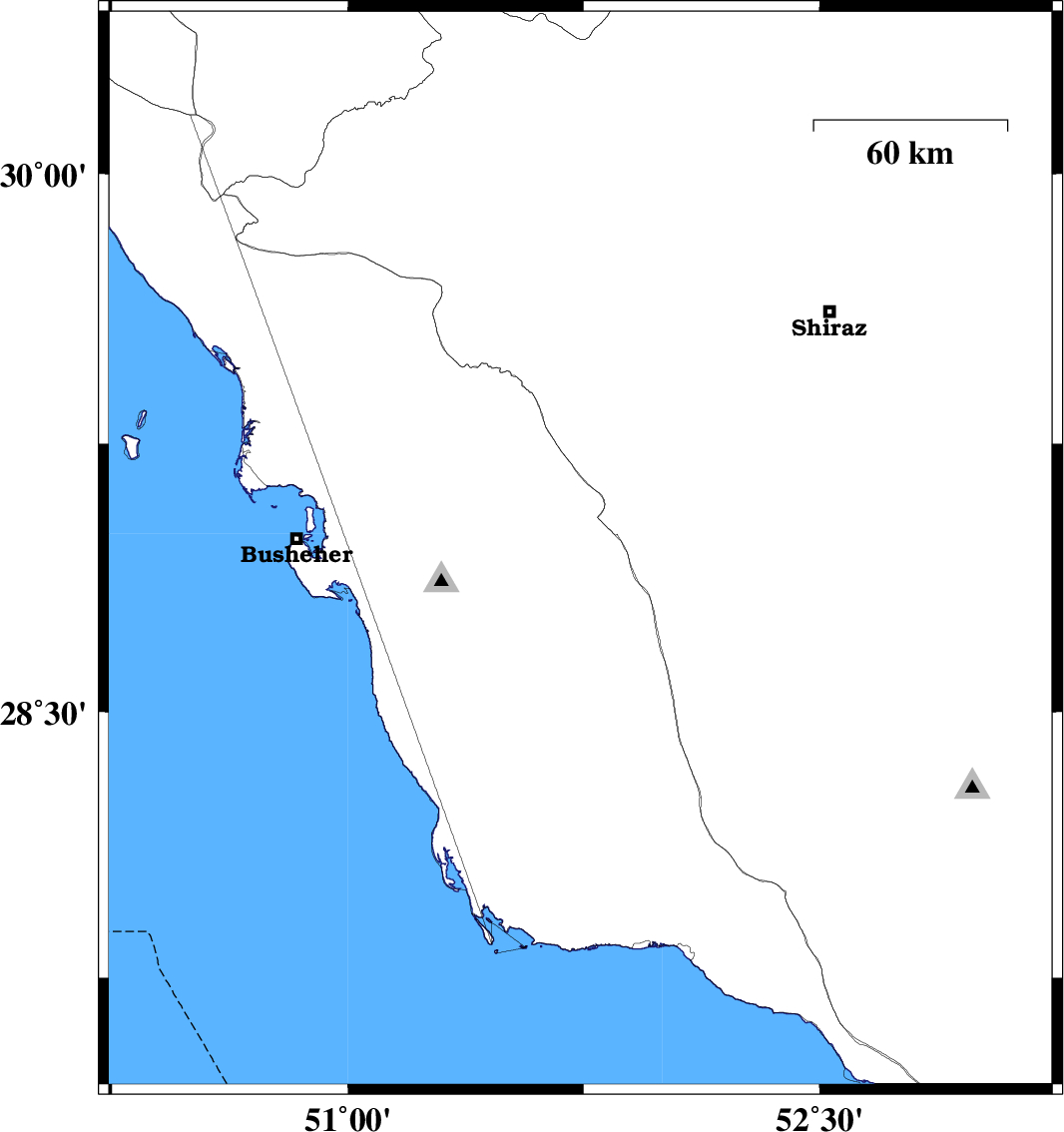 2008/01/23 | 11:21:25.9 | 14:51:25.9 | 28.93 | 50.7 | 45 | ML:3.8 | Persian Gulf, 14 km West of Busheher | ||
